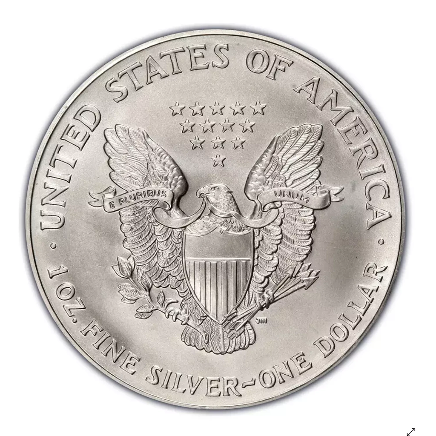 The Silver American Eagle is the official silver bullion coin of the United States. It was first released by the United States Mint in 1986. Its content, weight, and purity are certified by the US Mint. This beautifully designed 1 oz silver American Eagle coin has a silver content of 1 troy ounce and is guaranteed to be at least 999 fine.