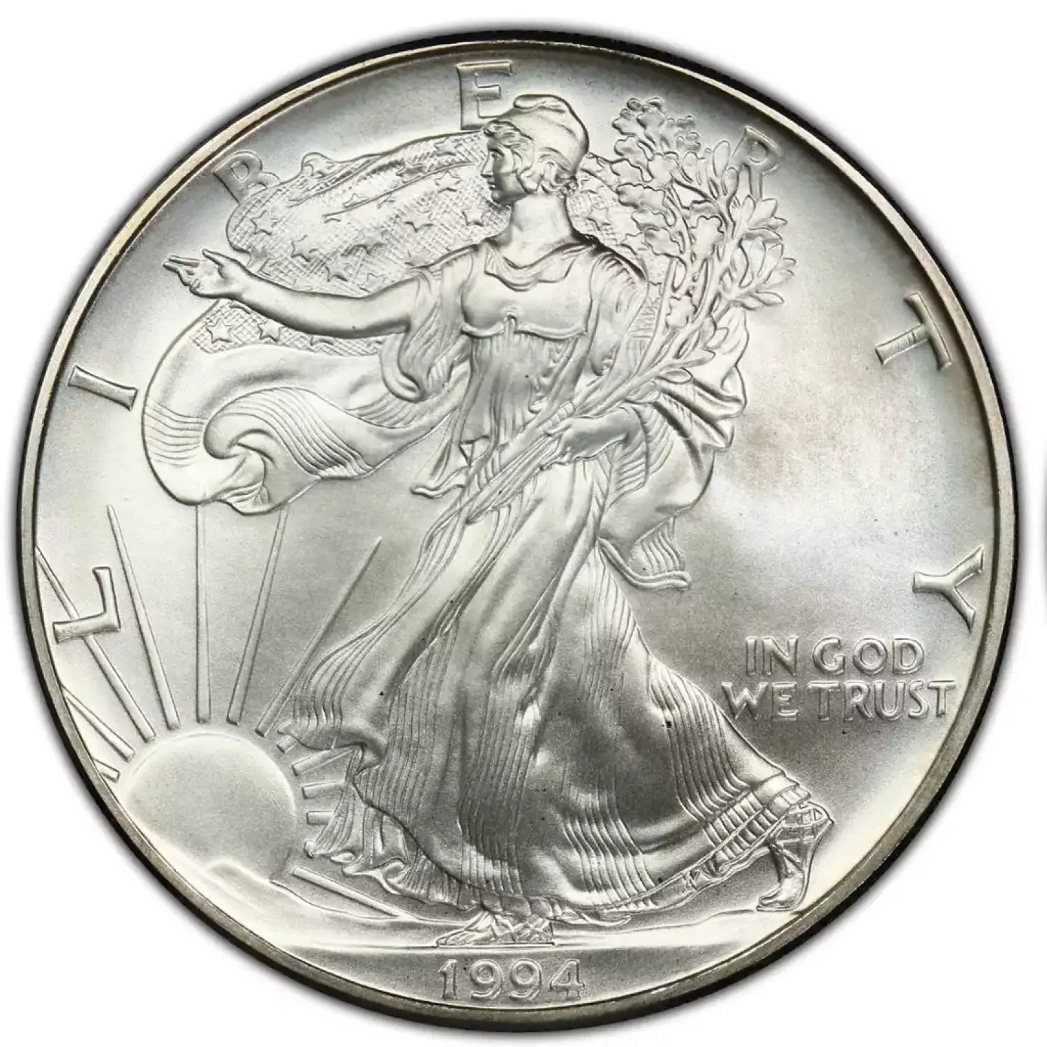The Silver American Eagle is the official silver bullion coin of the United States. It was first released by the United States Mint in 1986. Its content, weight, and purity are certified by the US Mint. This beautifully designed 1 oz silver American Eagle coin has a silver content of 1 troy ounce and is guaranteed to be at least 999 fine.