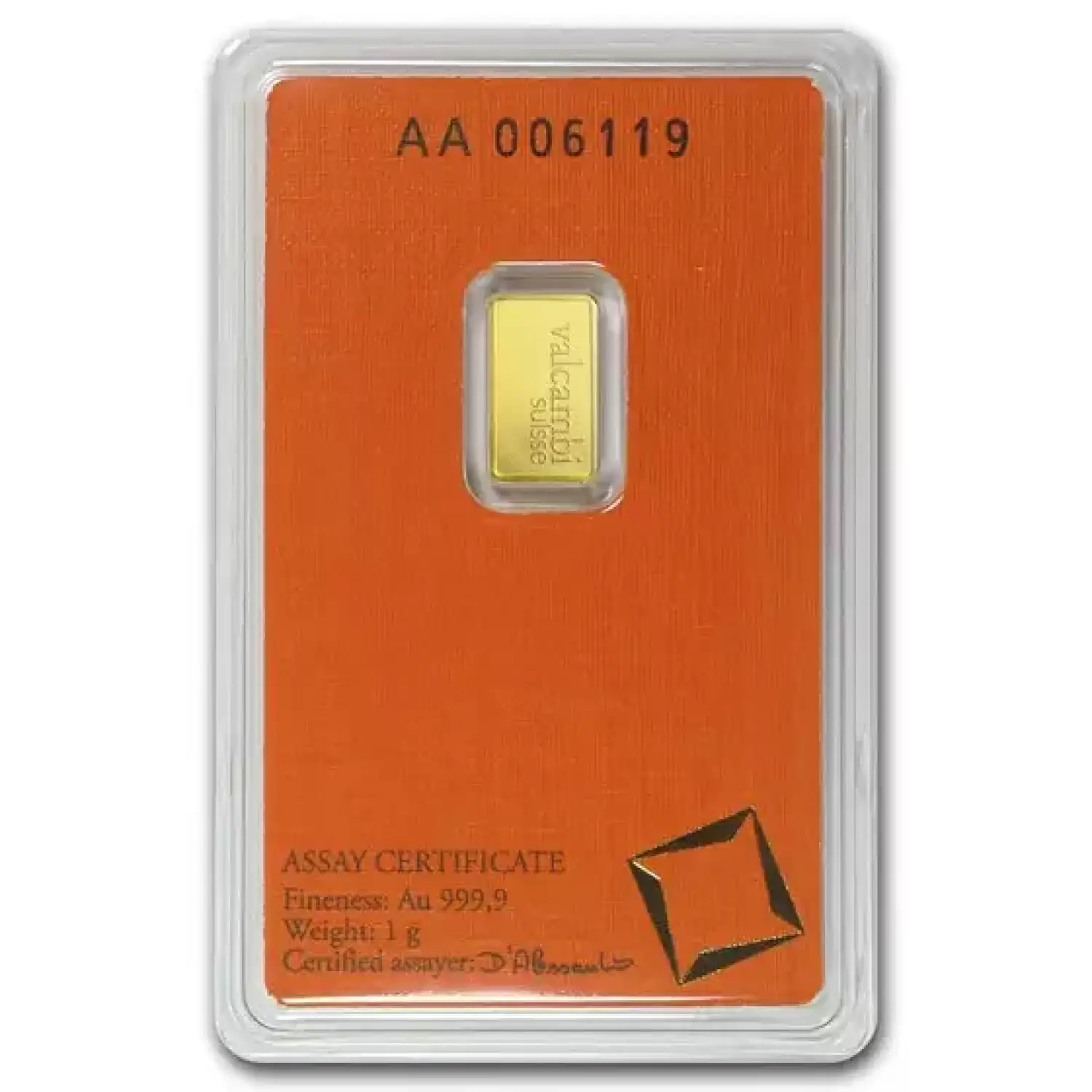 Want to buy a gold bar from one of the genuine bullion dealers? Order the high-quality 1g Valcambi Minted Gold Bar online today from us! The gold bar price is updated on our website every minute.
