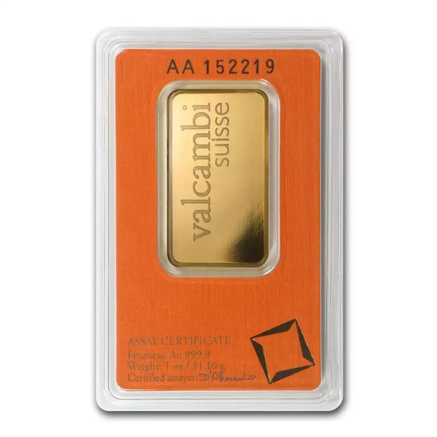 These 1 oz Gold bars hold an elegant and modern design with a mirrorlike finish. Coming from the historic Valcambi refiner, these exceptional quality Gold bars are an effective way to enhance your portfolio.