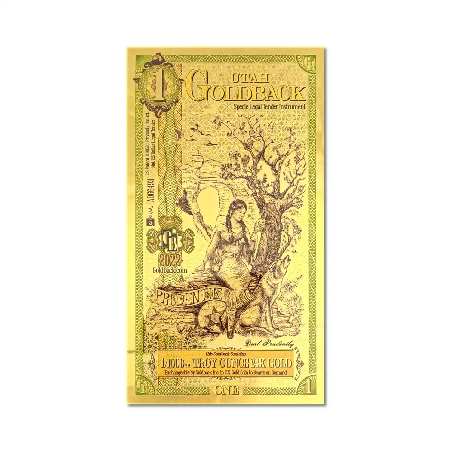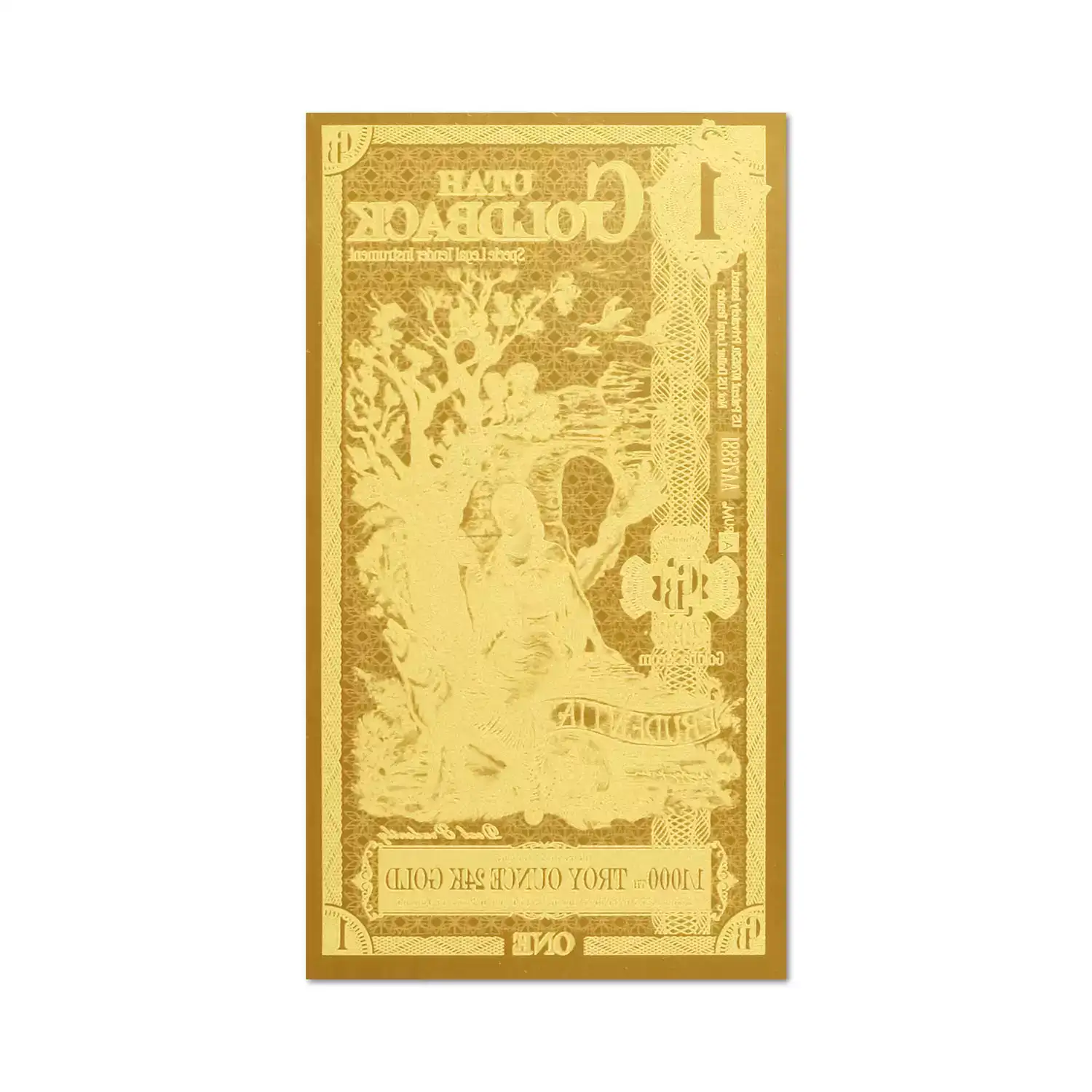These Utah Goldback foil notes contain 1/1000 oz .999 fine Gold which is the first local, voluntary currency to be made of a spendable, beautiful, physical Gold.