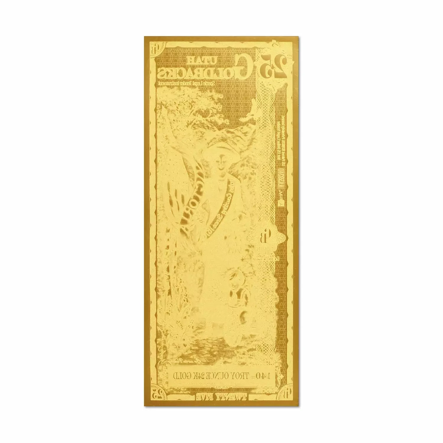 These Utah Goldback foil notes contain 1/40 oz of .999 fine Gold which is the first local, voluntary currency to be made of a spendable, beautiful, physical Gold.