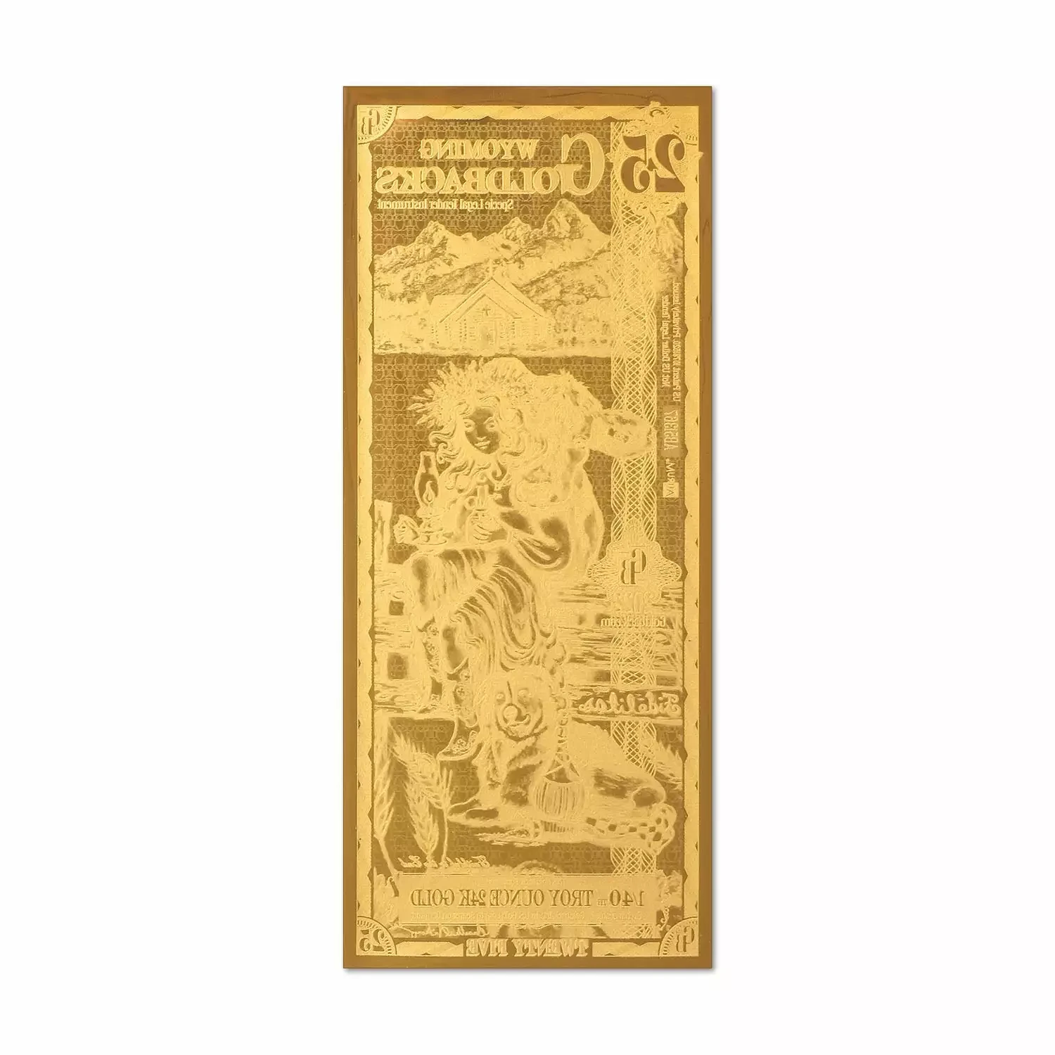 These Wyoming Goldback foil notes contain 1/40 oz of .999 fine Gold which is the first local, voluntary currency to be made of a spendable, beautiful, physical Gold.