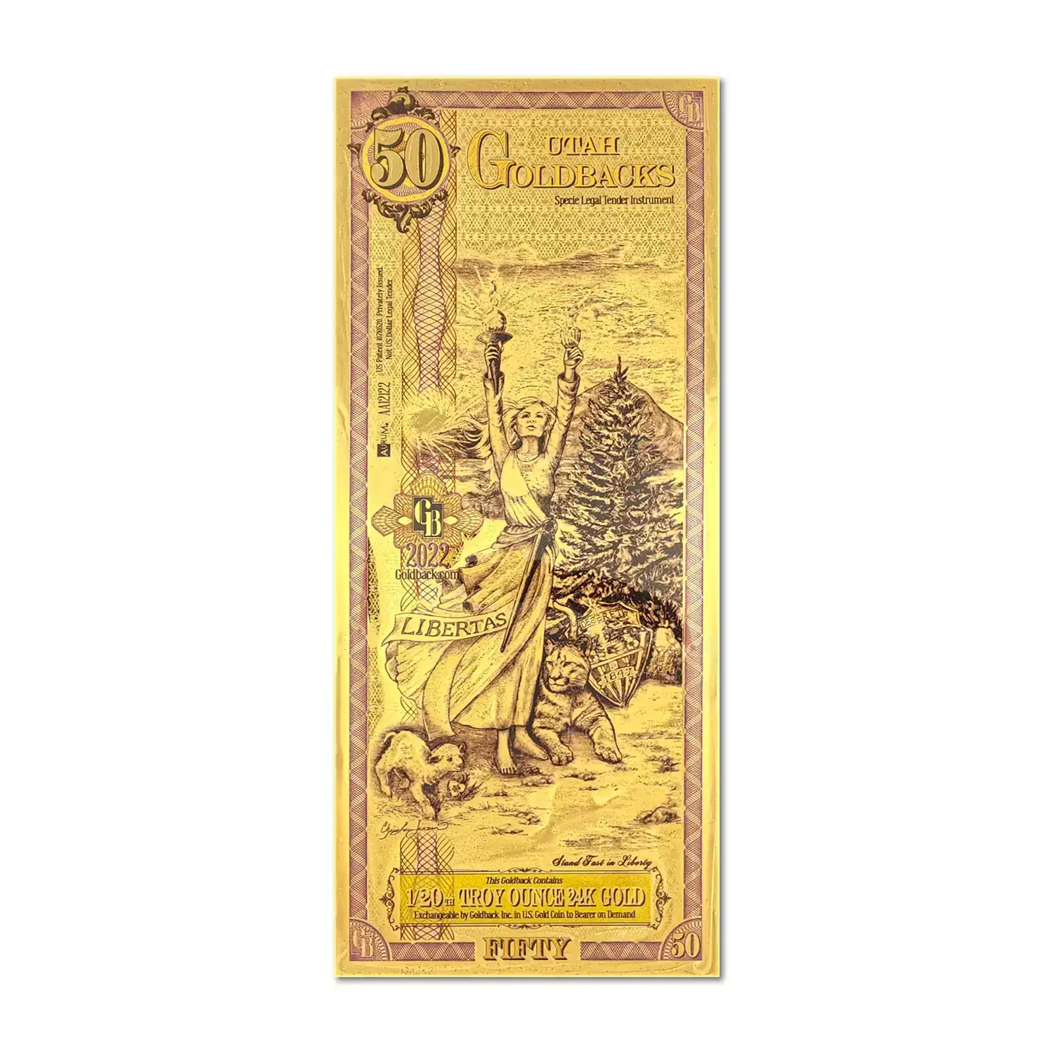 These Utah Goldback foil notes contain 1/20 oz of .999 fine Gold which is the first local, voluntary currency to be made of a spendable, beautiful, physical Gold.