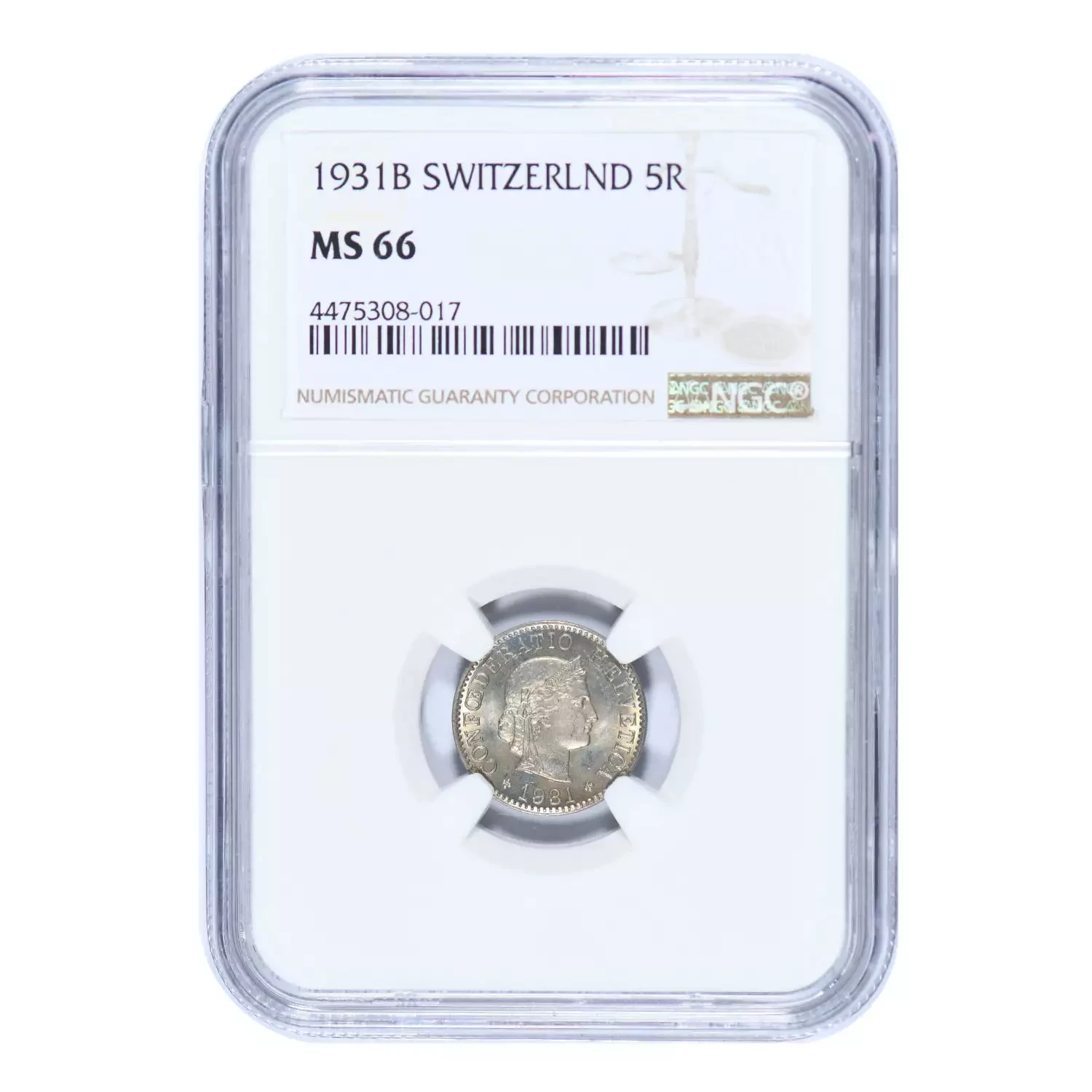 1931 SWITZERLAND Bern 5 RAPPEN NGC MS-66 B KM#5
