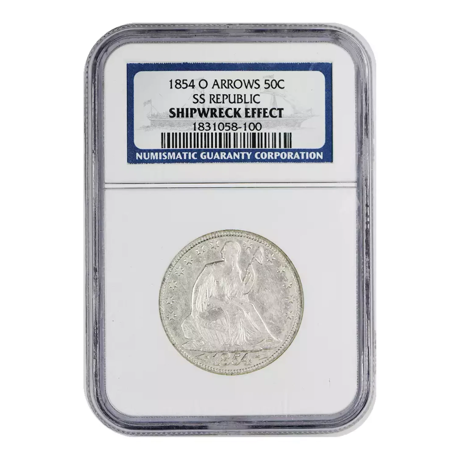 1854 O Half Dollars Liberty Seated NGC VF Details SS REPUBLIC