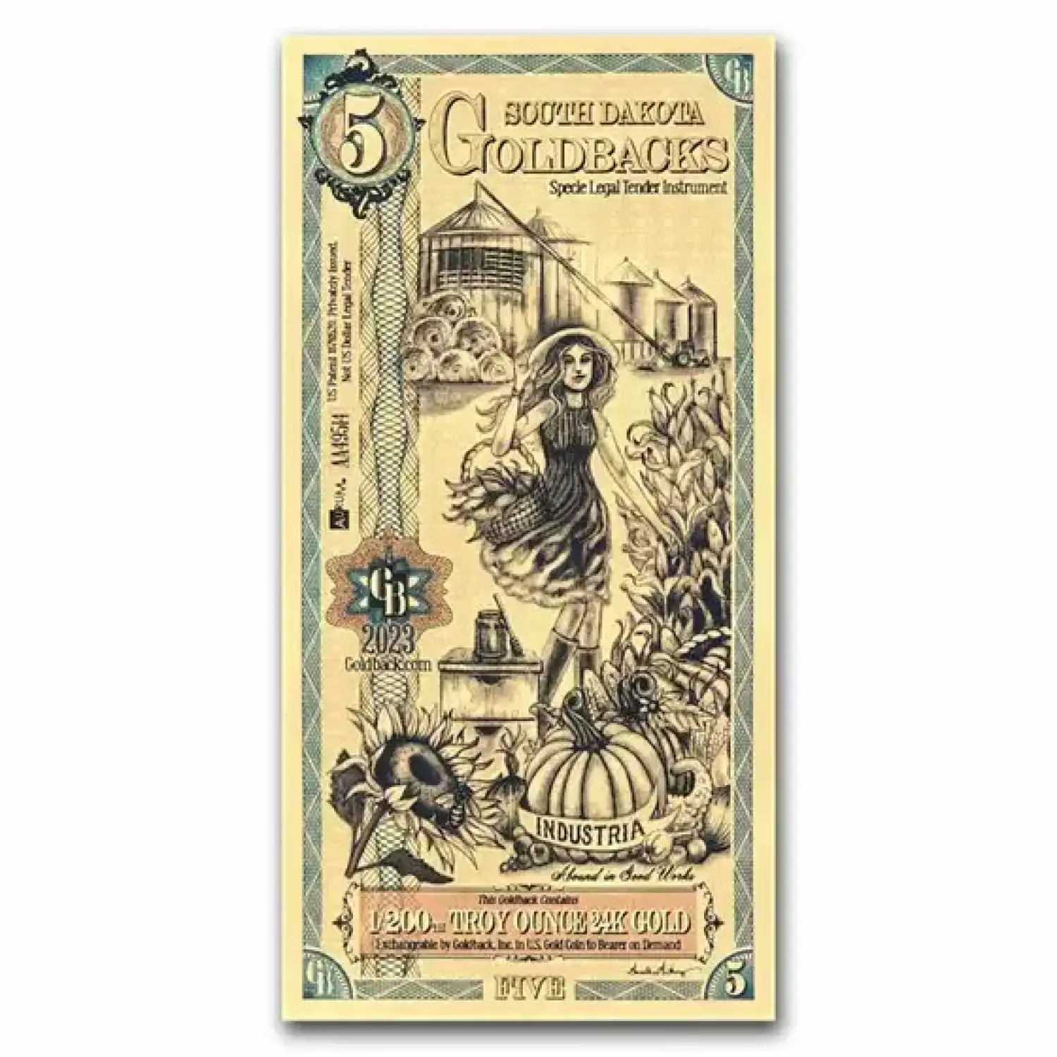 These South Dakota Goldback foil notes contain 1/200 oz of .999 fine Gold which is the first local, voluntary currency to be made of a spendable, beautiful, physical Gold.