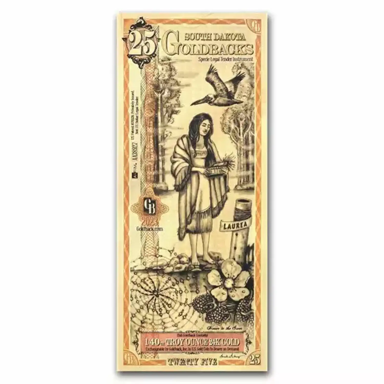 These South Dakota Goldback foil notes contain 1/40 oz of .999 fine Gold which is the first local, voluntary currency to be made of a spendable, beautiful, physical Gold.