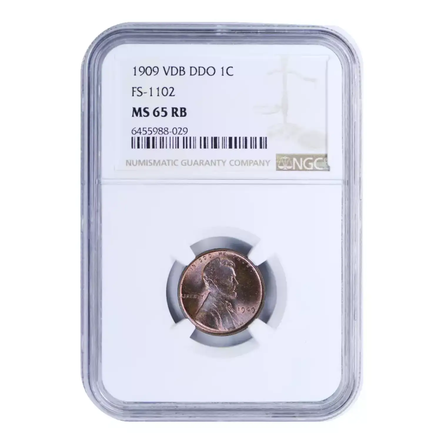 1909 P Lincoln Wheat Cent NGC MS-65 RB VDB DDO FS-1102