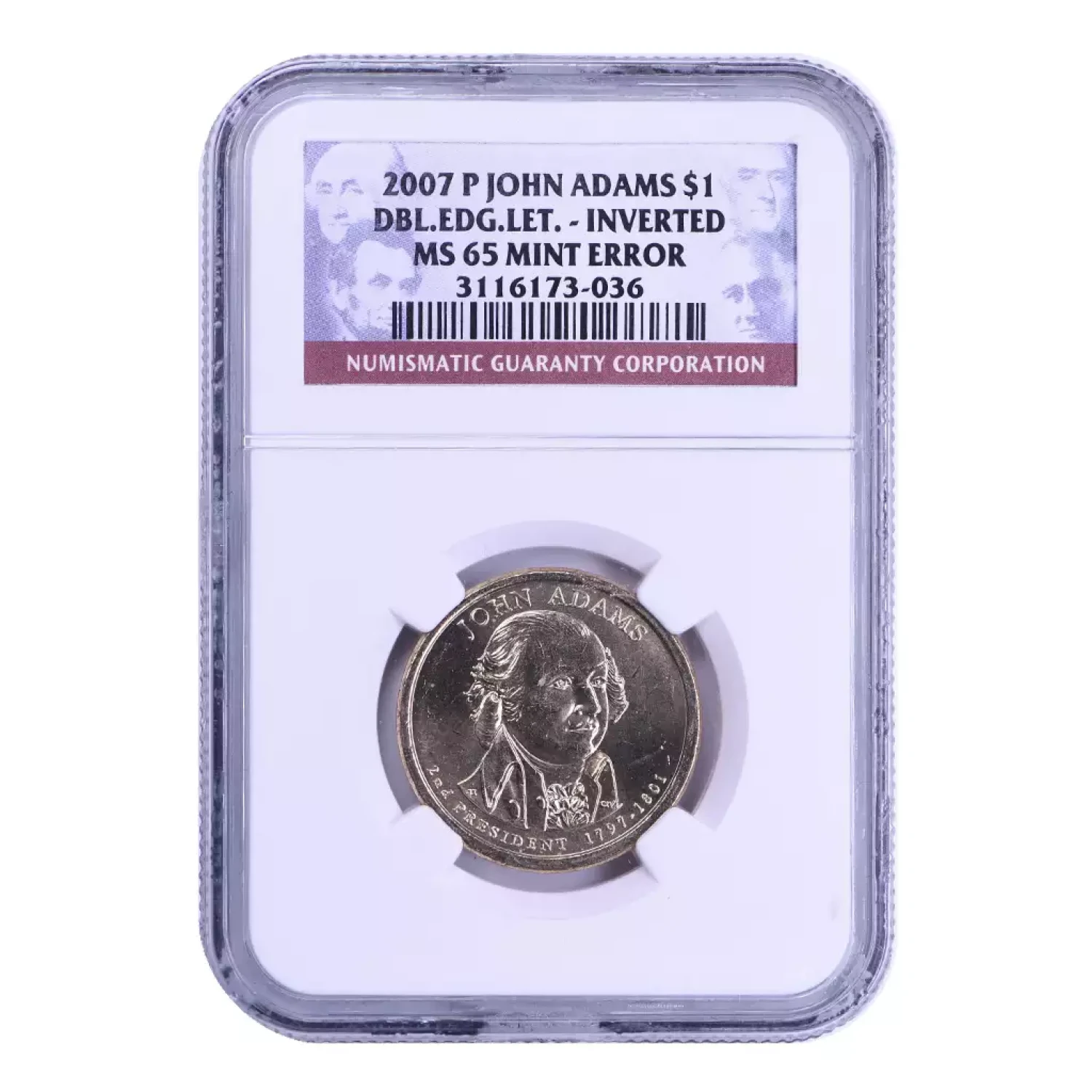 2007 Dollar Presidential NGC MS-65 MINT ERROR DBL.EDG.LET. - INVERTED