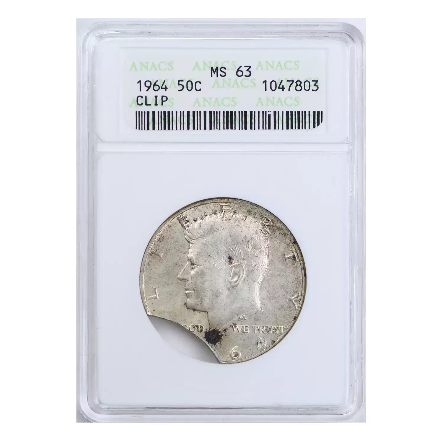 1964 Half Dollars Kennedy ANACS MS-63 Clipped Planchet Mint Error
