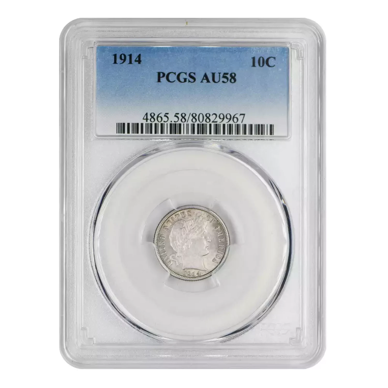 1914 P Dimes Barber or Liberty Head PCGS AU-58