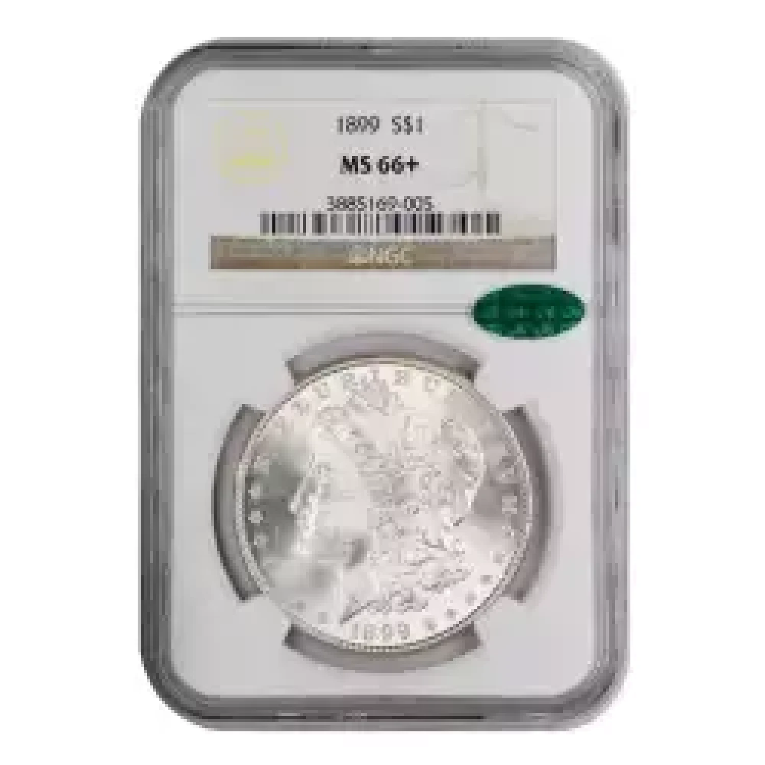 1899 $1 NGC MS66+ green CAC sticker. A beautiful gem example of this low mintage Philadelphia issue. Well struck with intense frosty luster. Remarkably well preserved, with virtually no seriously distracting flaws.
