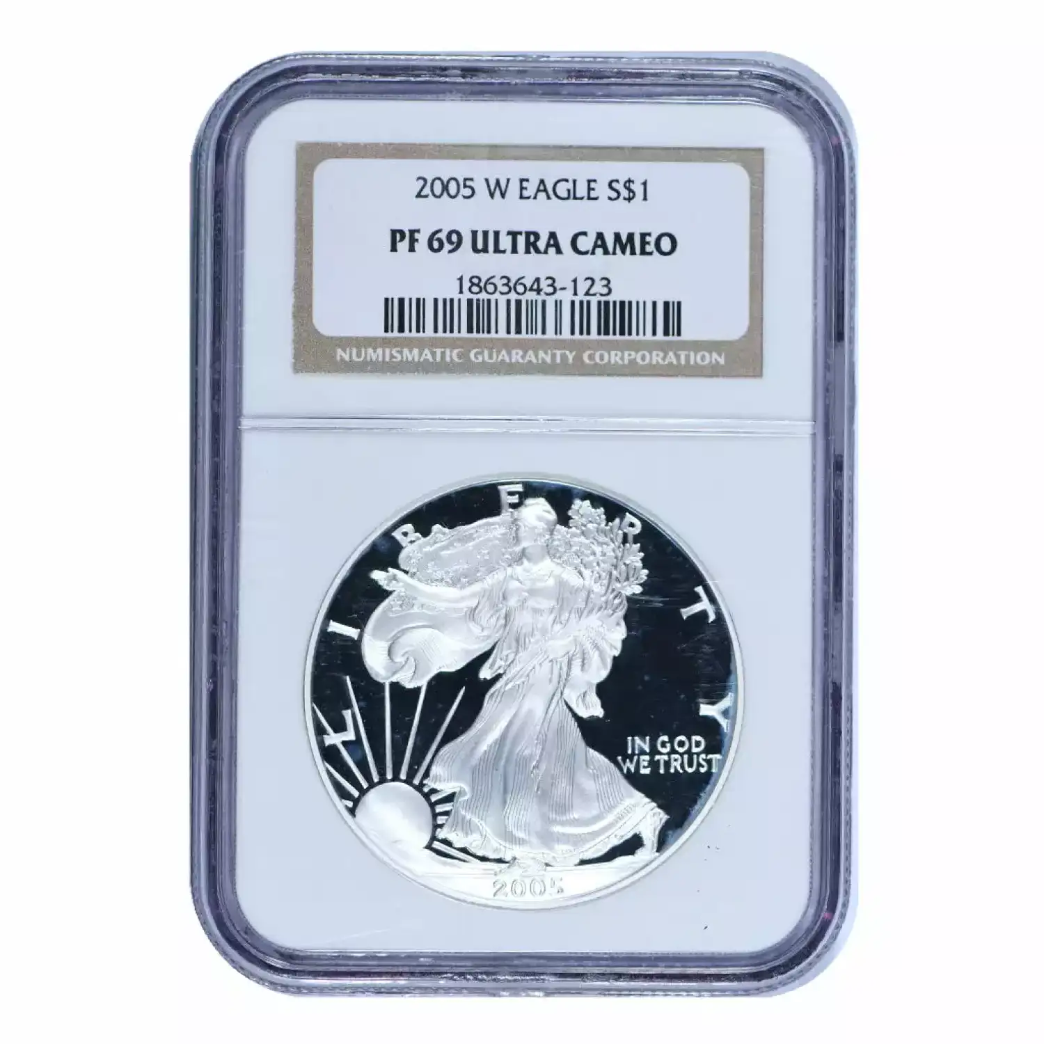 | Name | 2005-W American Silver Eagle Brown Label NGC PF69 Ultra Cameo |