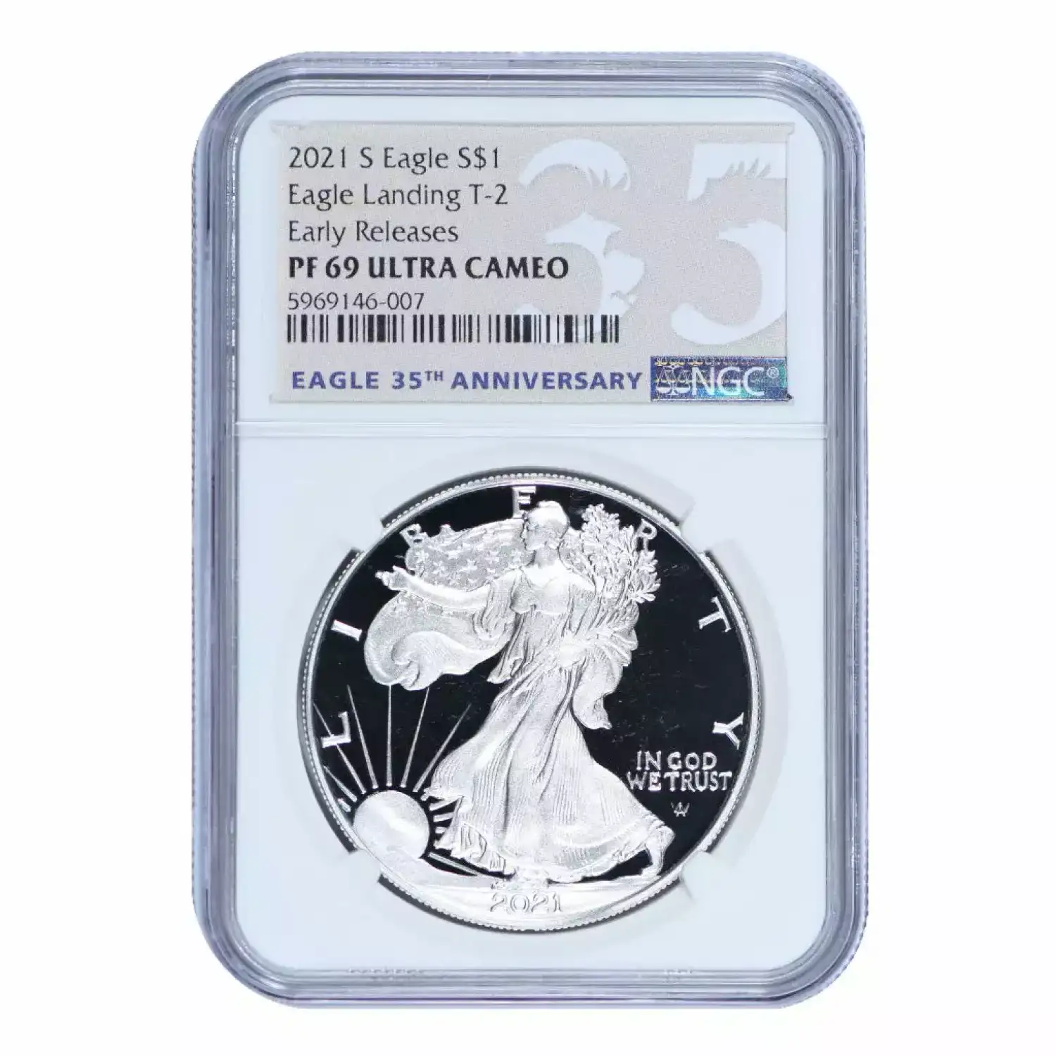 | Name | 2021-S American Silver Eagle, Eagle Landing T-2 NGC PF69 Ultra Cameo ER Label |