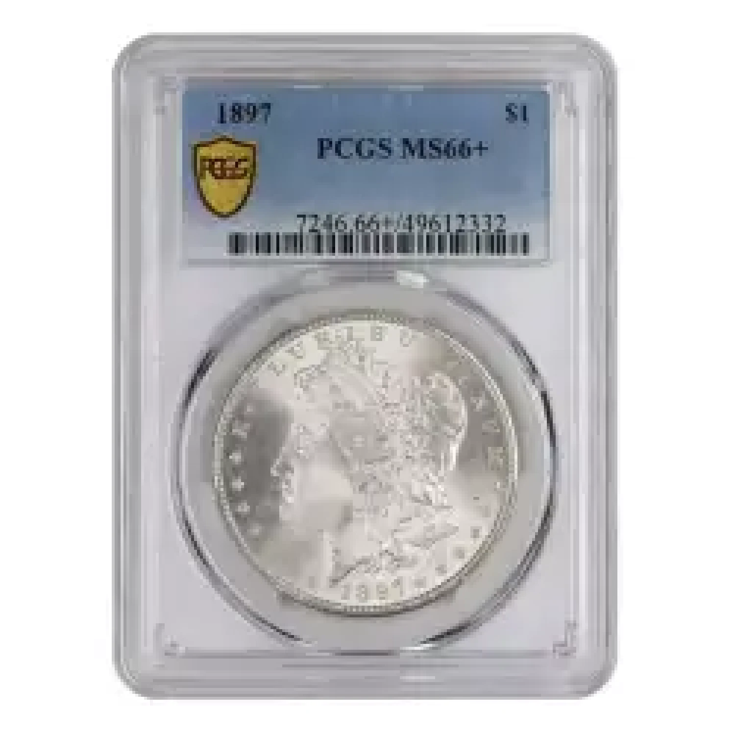 1897 $1 PCGS MS66+. While this Philadelphia mint 1897 Morgan dollar may be common in low uncirculated grades, it becomes a scarce conditional rarity above MS66. The example offered here features frosty white surfaces with ample luster, and an excellent strike. Truly impressively well preserved. Value increases dramatically in the next grade up, rendering MS66+ an optimal balance of both price and quality.
