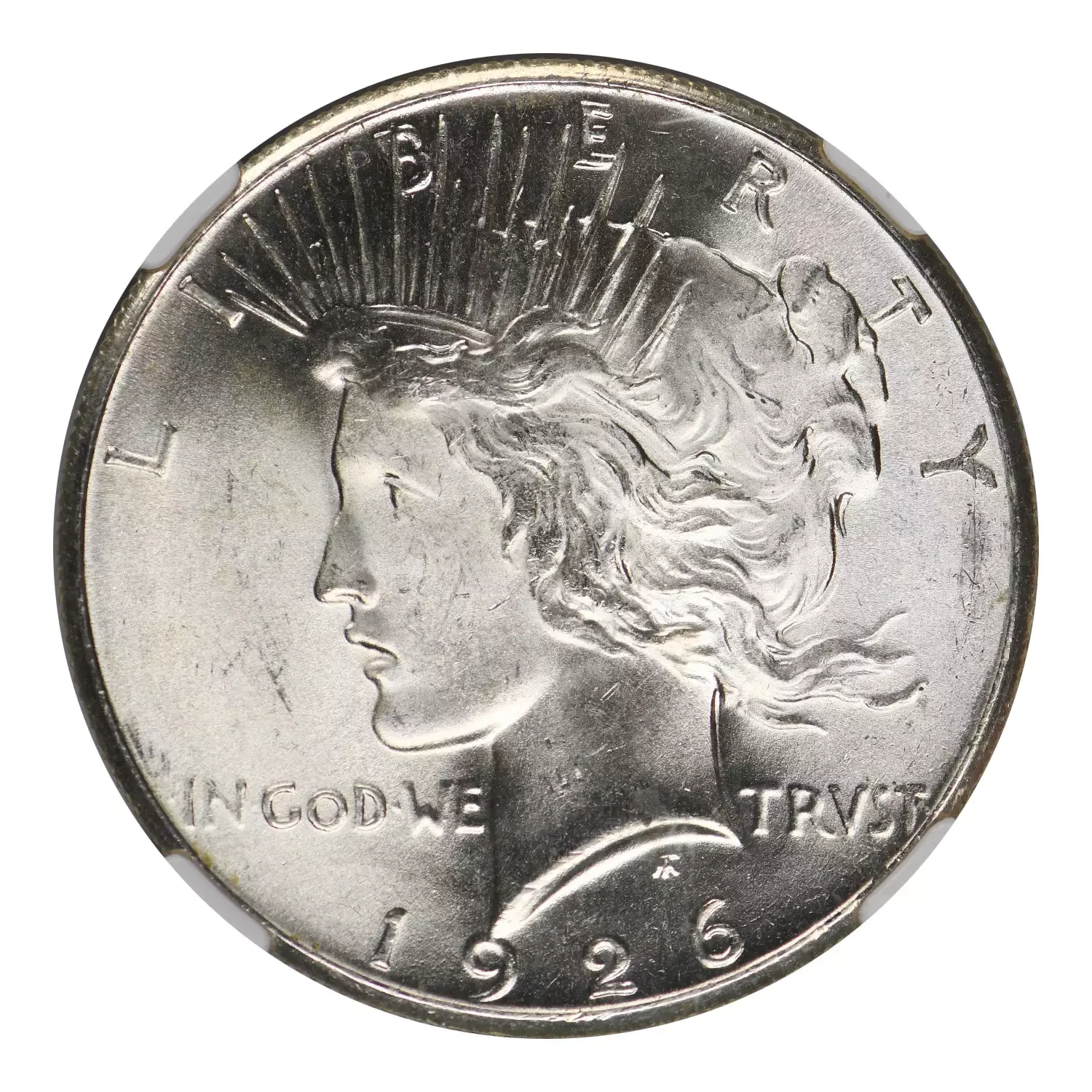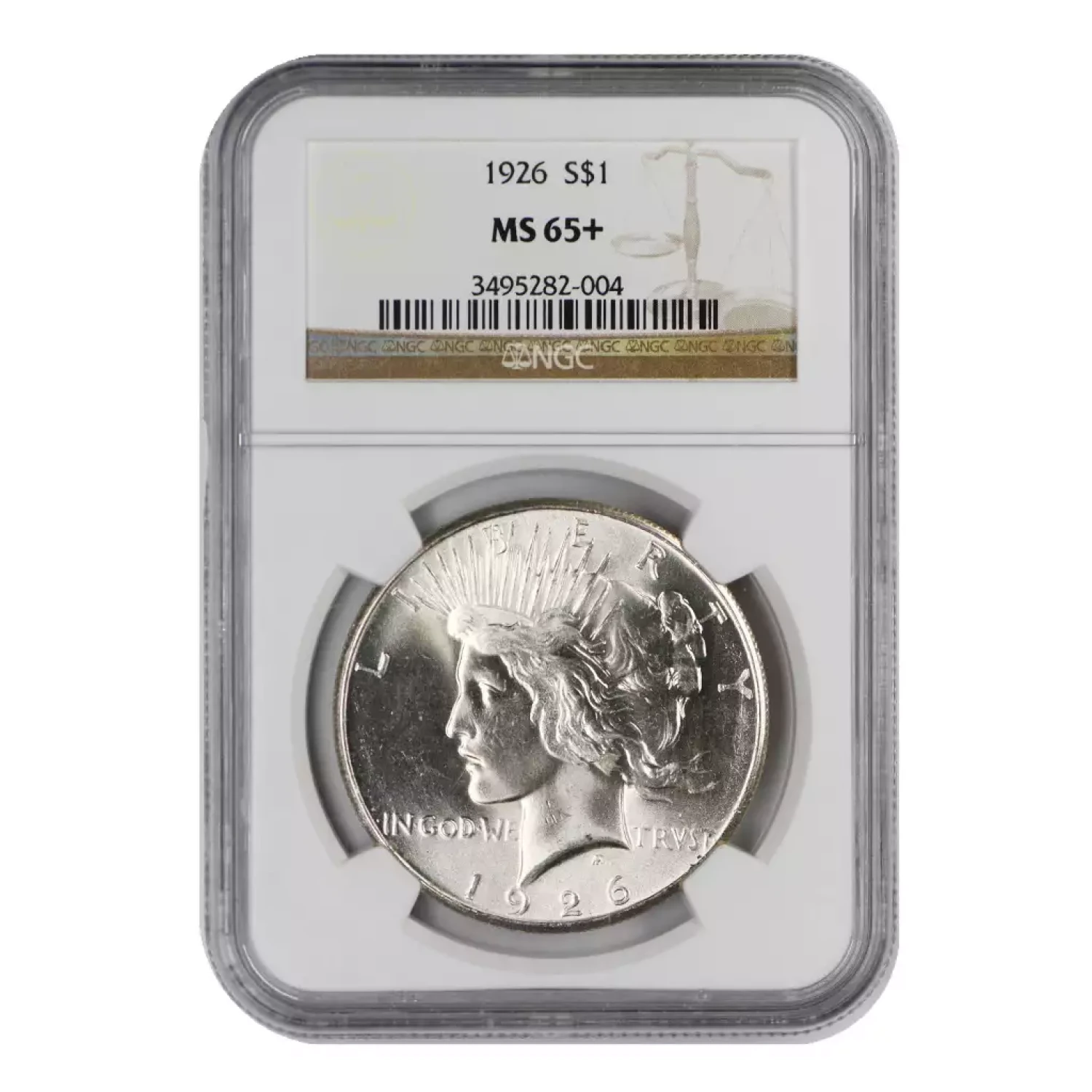 1926 $1 NGC MS65+. A beautiful gem example of this better date Philadelphia mint issue! Snow white surfaces display radiant swirling luster. Sharply struck and impressively well preserved.