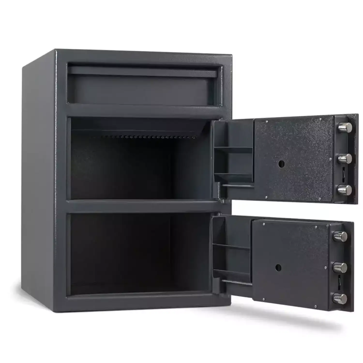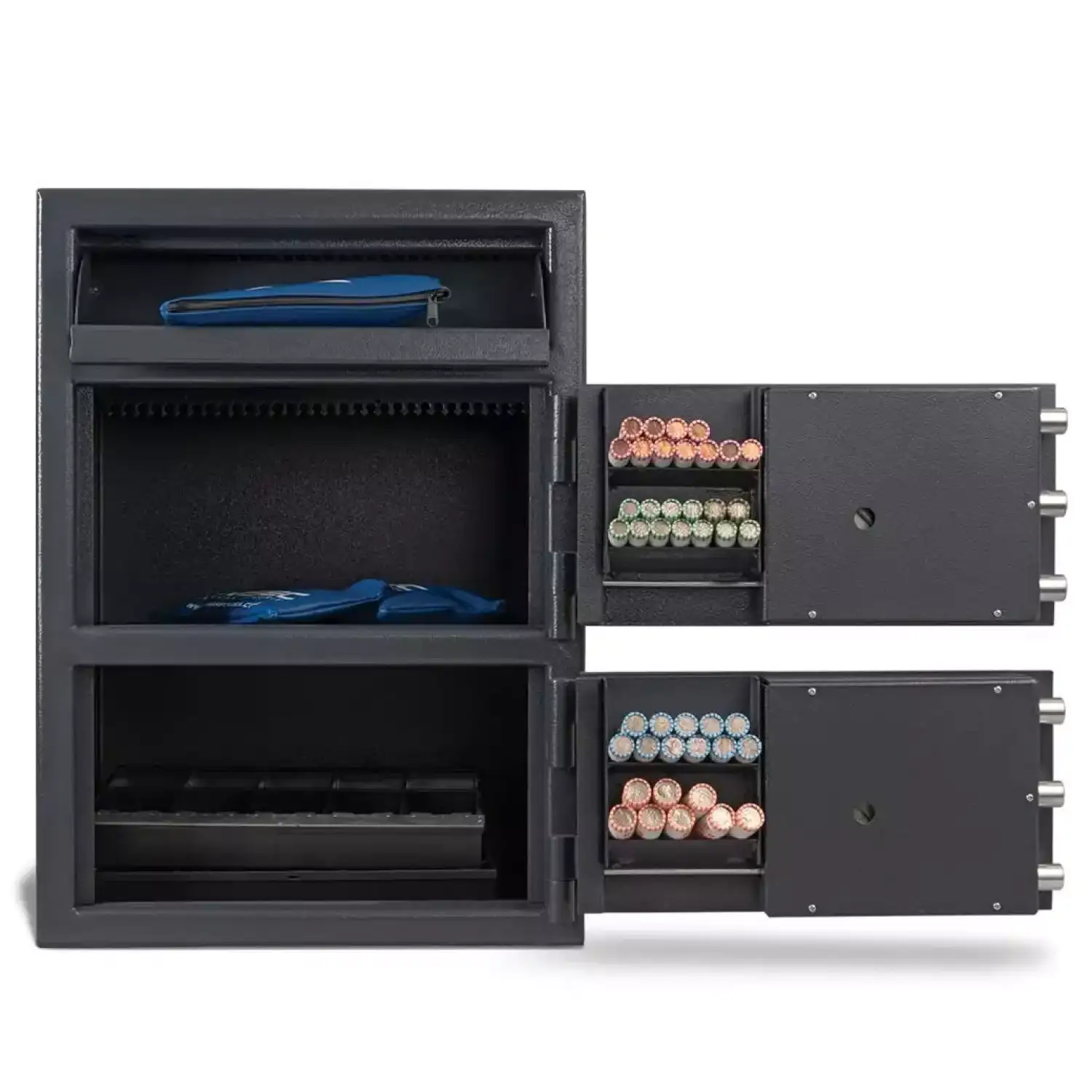 The AMSEC Model MM2820Top-Drop-ESLAudit Top Drop is ideal if you have a need to store larger objects as the lower compartment boasts of a door opening 8.5 inches high and a full 16" wide.