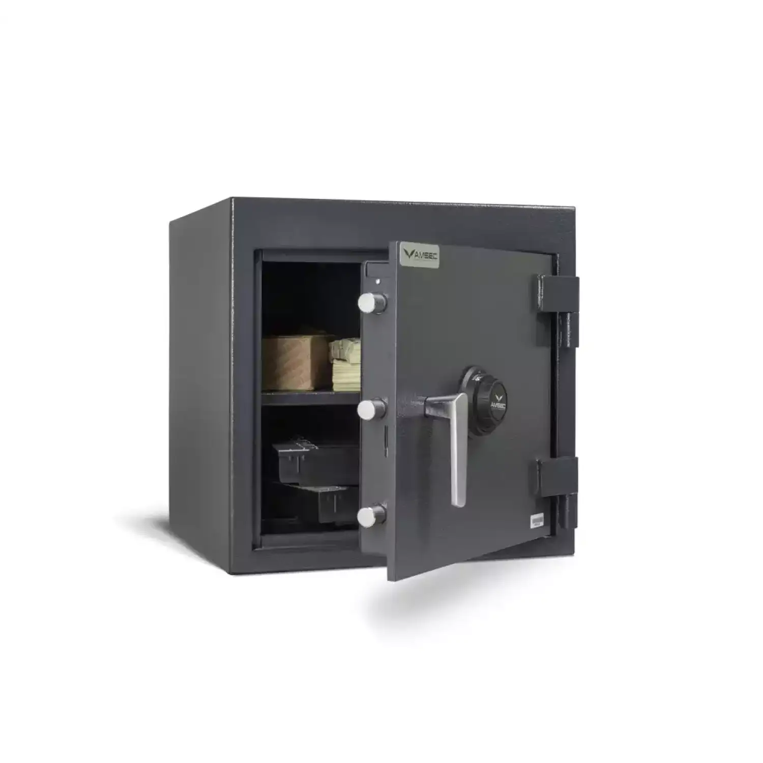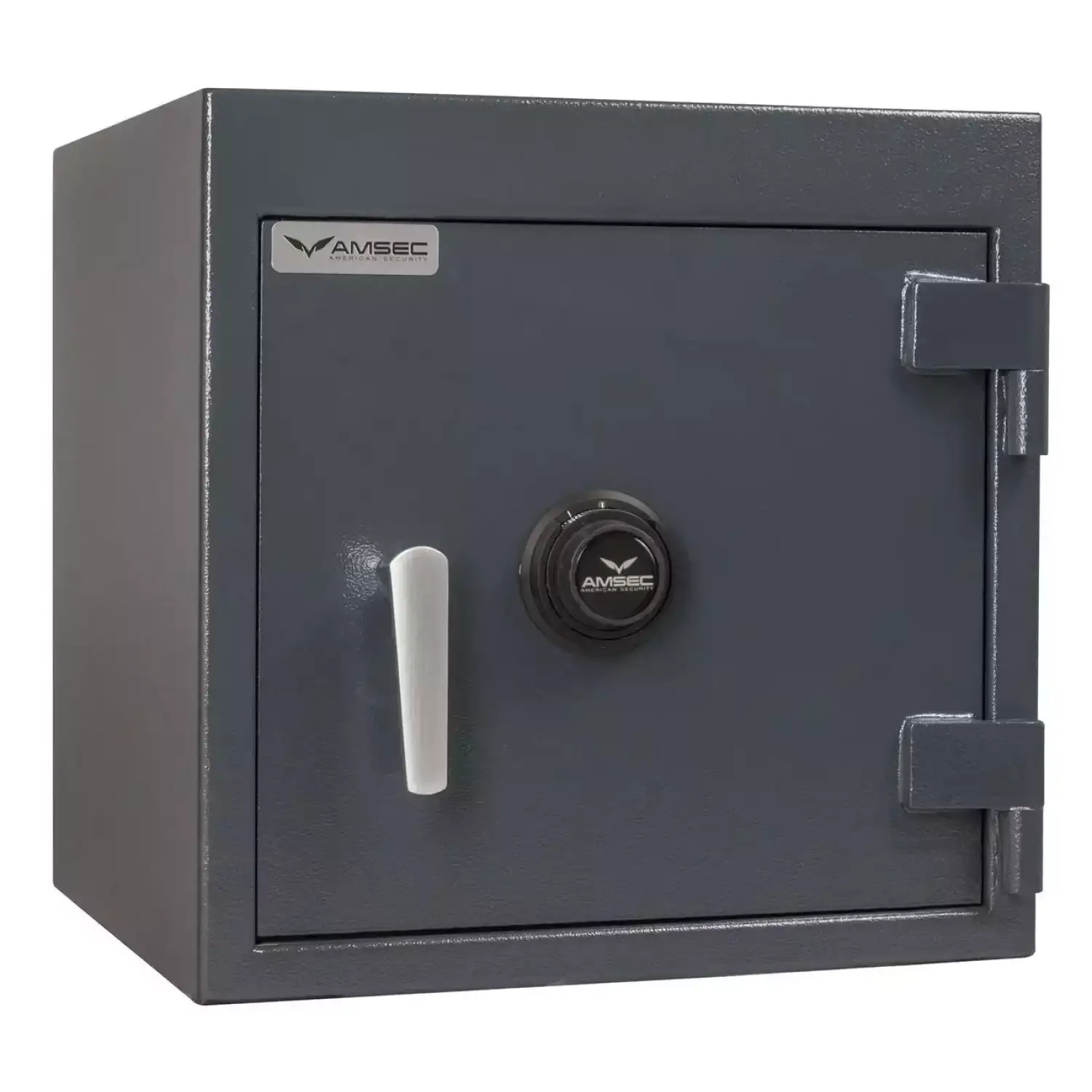 The AMSEC "B" Rate Security Safe has a 1/2" thick solid steel door recessed for resistance to pry attacks. The door jamb construction has maximized protection against pry attacks by its body being formed of high-tensile steel. An ESL10 Digital Lock is standard. You can upgrade to an ESL20XL, giving you up to 9 user codes, time delay, and dual control mode.