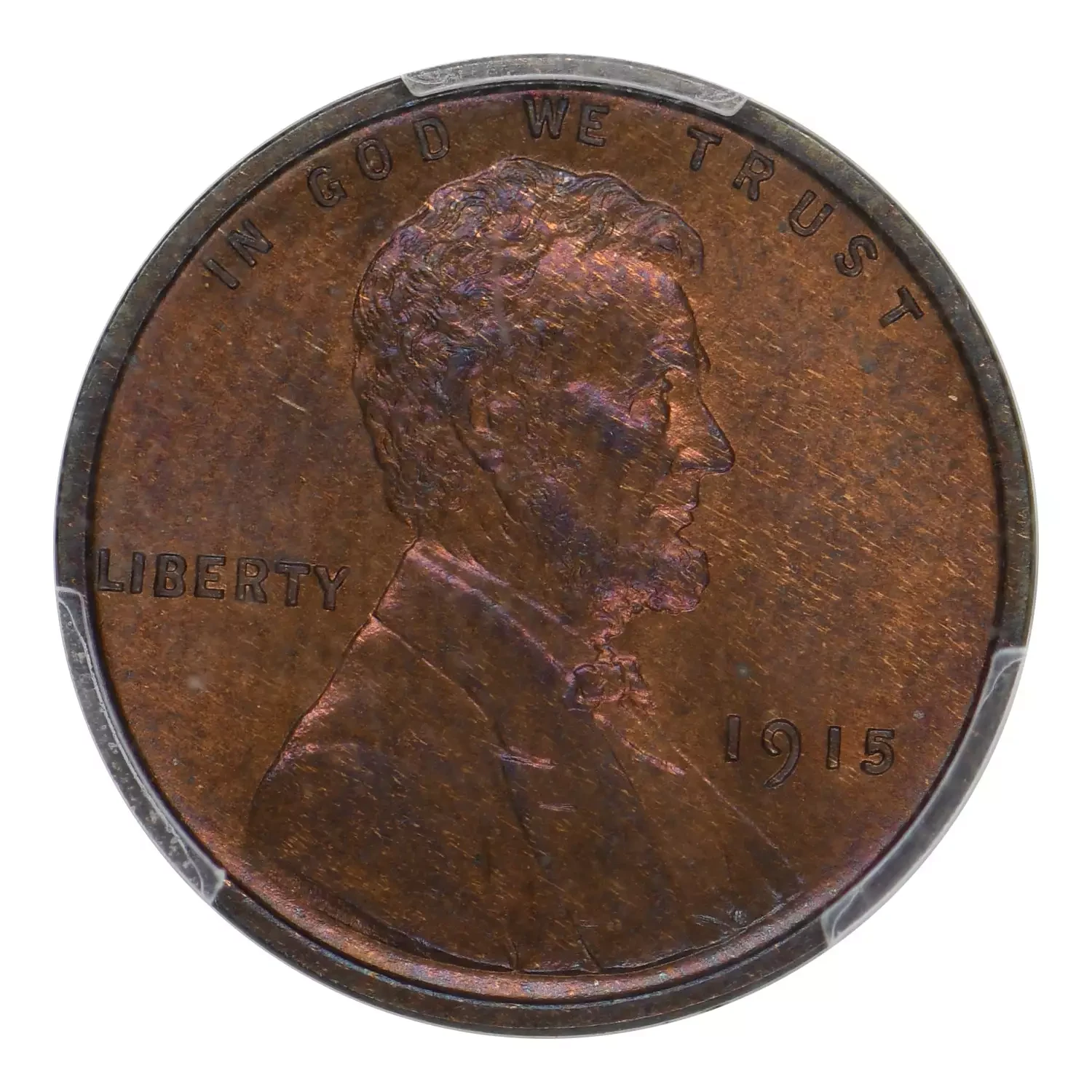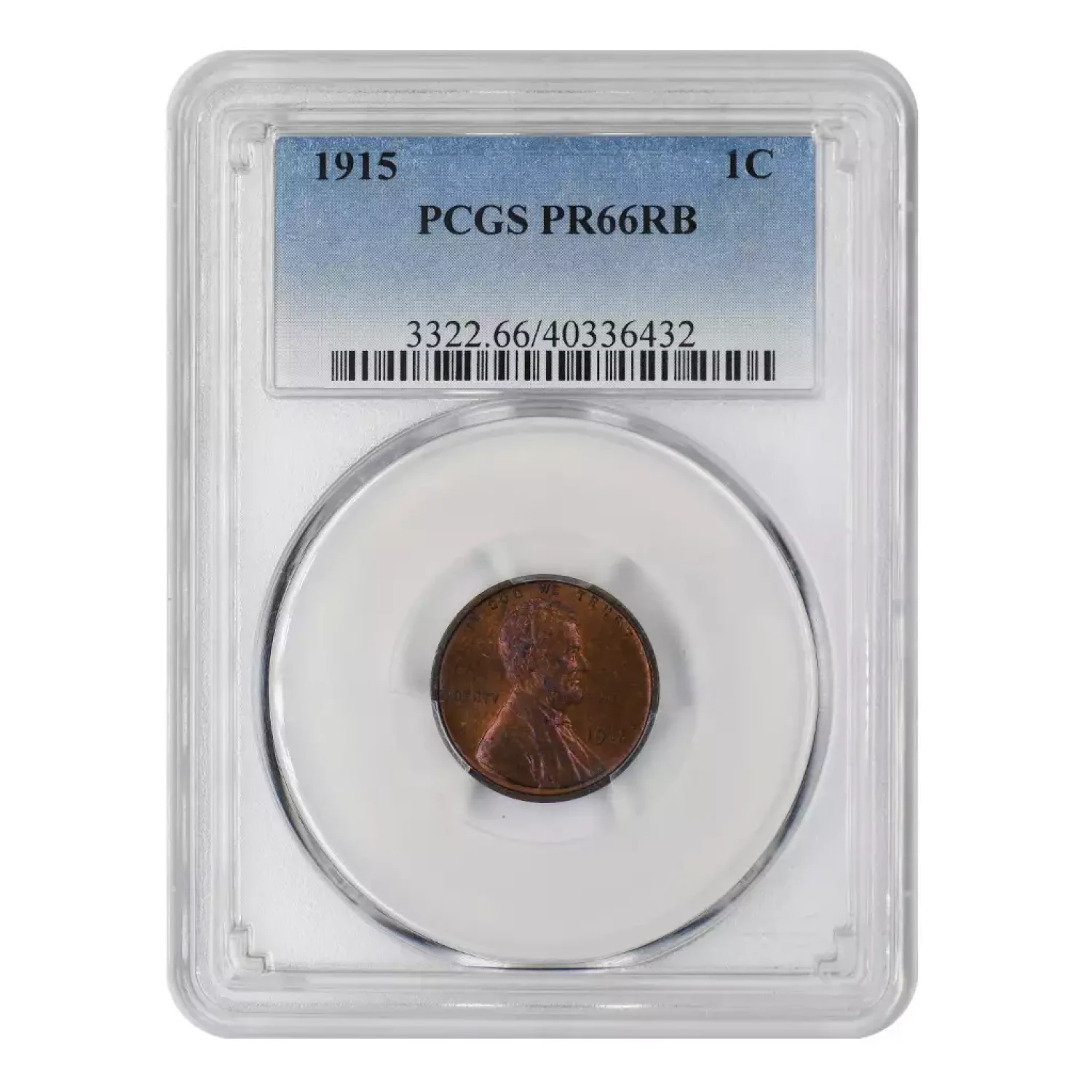 1915 1c PCGS PR66RB. A stunning choice gem with a mintage of just 1,150. One of just 32 certified in this grade by PCGS, with just 12 finer RB examples. While matte proof Lincoln cents are often plagued with unsightly spotting, cleanings, or other environmental issues, this example serves as a clear outlier. Attractively patinated surfaces display rich brown and blue color, with underlying mint red visible throughout. Nearly spotless with only a stray light reverse spot. Simply impeccably preserved with no signs of mishandling.