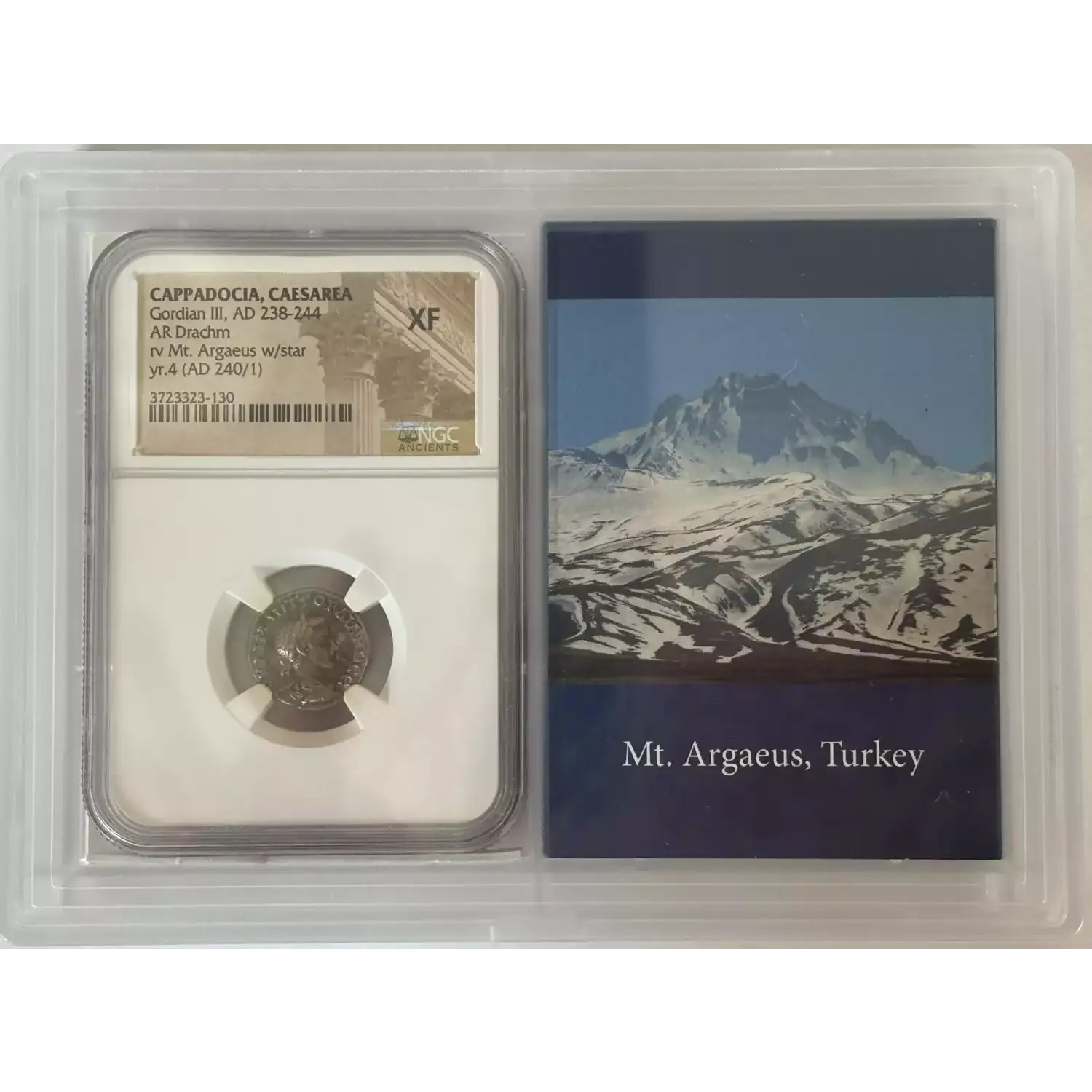 Cappadocia, Caesarea Gordian III, AR Drachm rv Mt. Argaeus w/star yr. 4