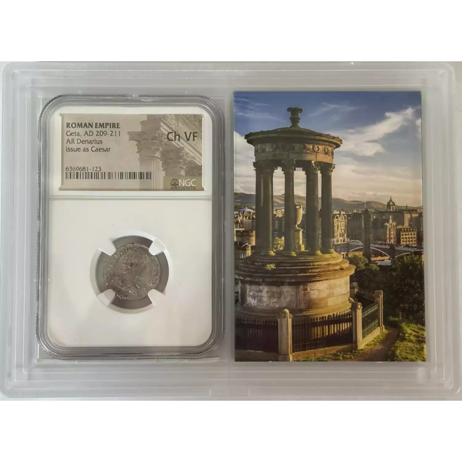 | Designation | Roman Empire Geta, AR Denarius issue as Caesar |