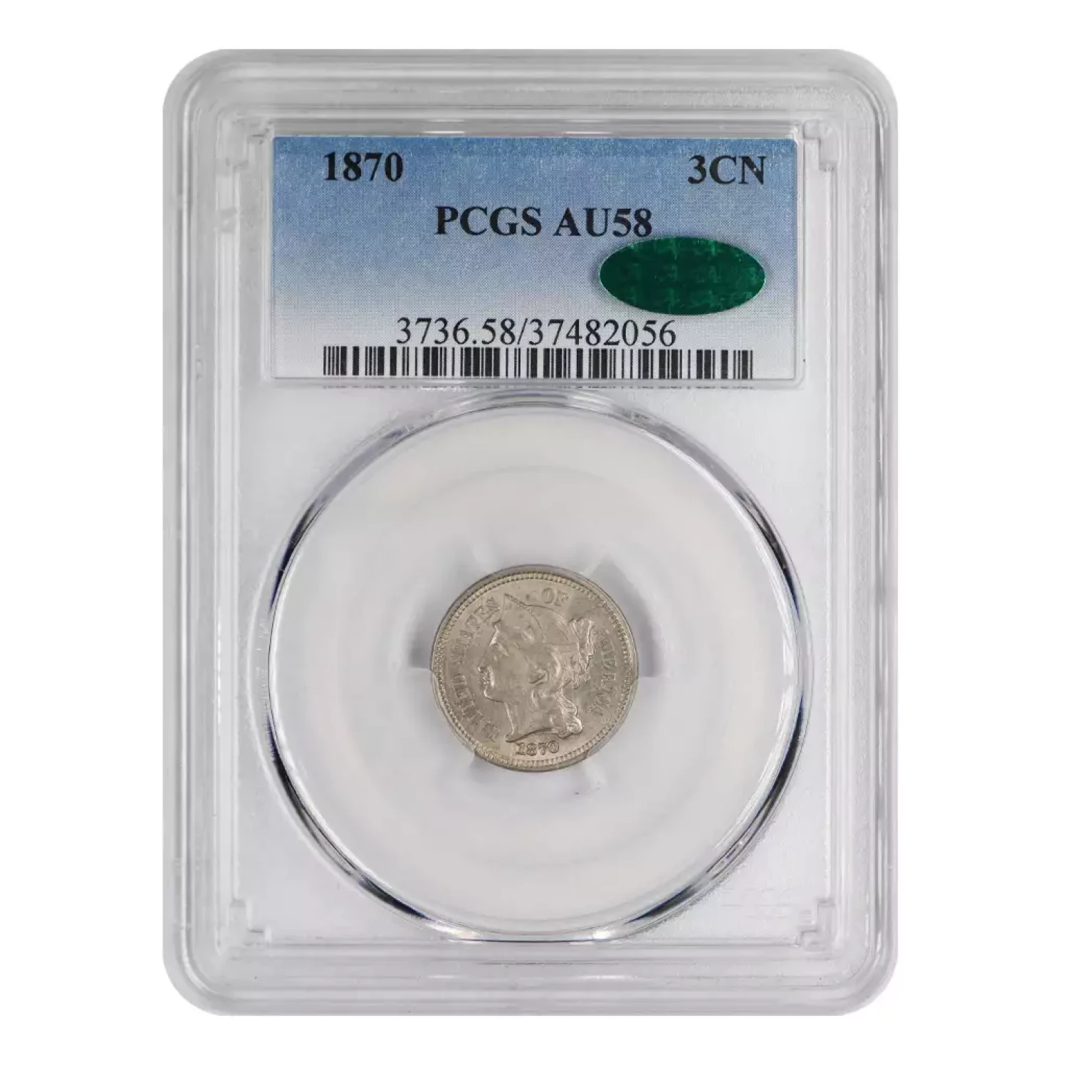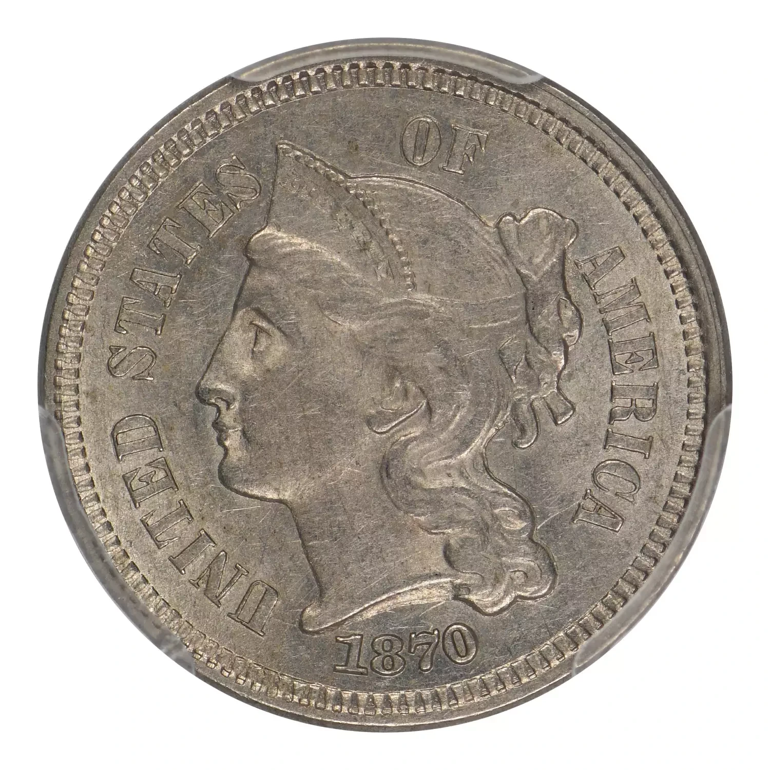 1870 P Nickel Three Cent Pieces PCGS AU-58
