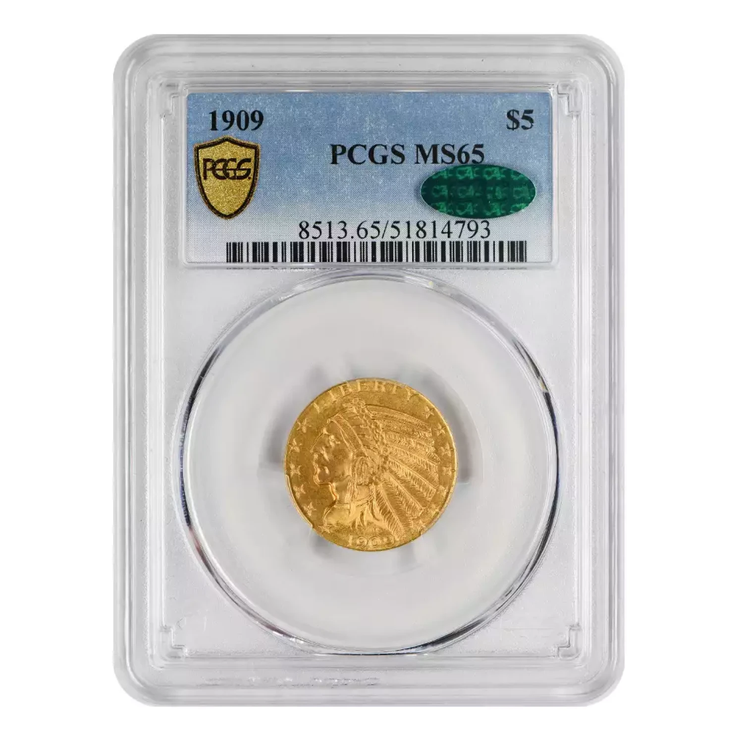 1909 P Gold Half Eagles $5 Indian Head PCGS MS-65 CAC