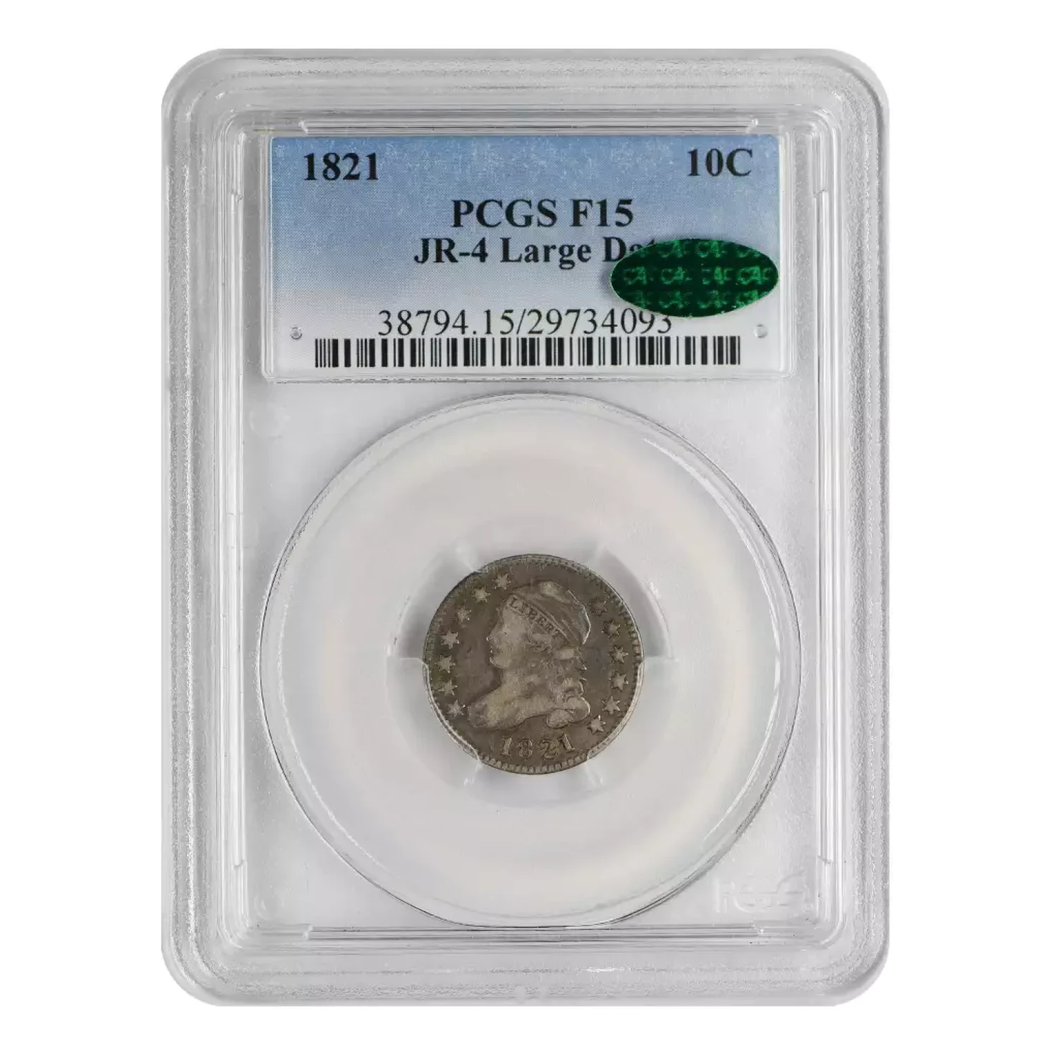 1821 P Capped Bust Dimes PCGS F-15 Large Date JR-4