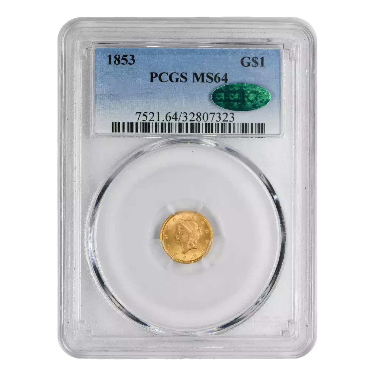 1853 P Gold Dollars Liberty Head PCGS MS-64 CAC