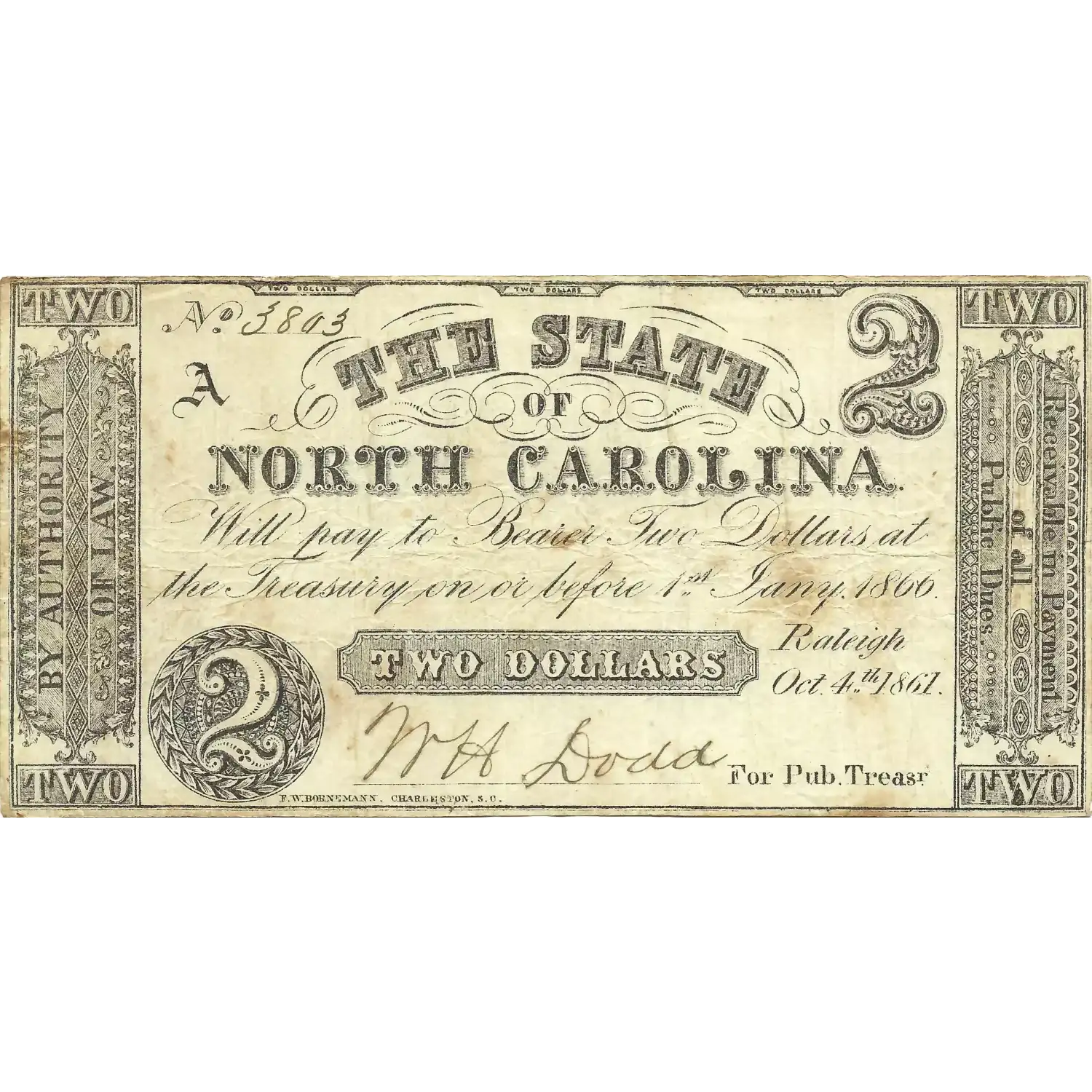 $2 1861 U.S. Obsolete Currency Note, The State of North Carolina