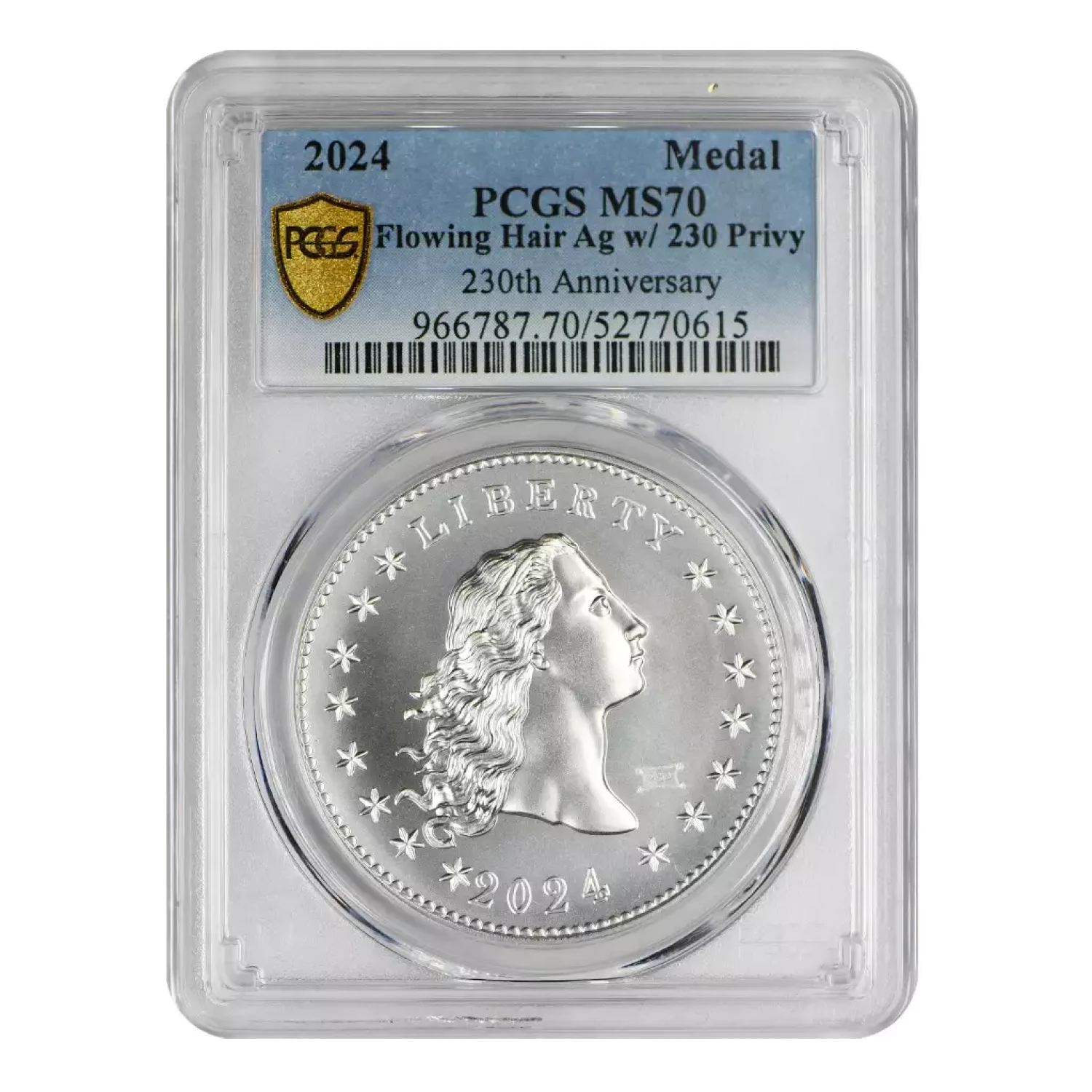 2024 Silver Flowing Hair 230th Anniversary Medal PCGS MS-70 w/ 230 Privy