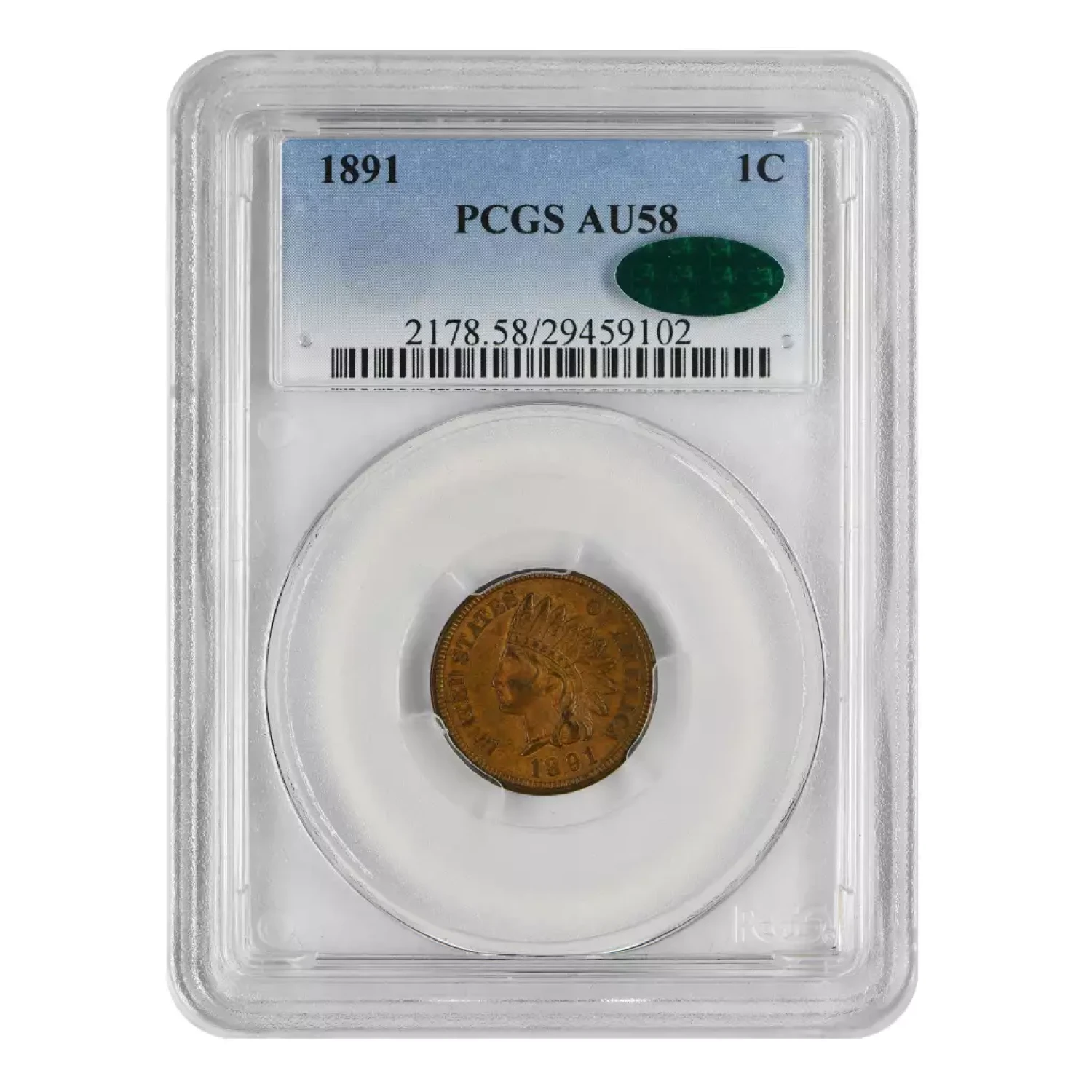 1891 P Indian Head Cent PCGS AU-58 BN CAC