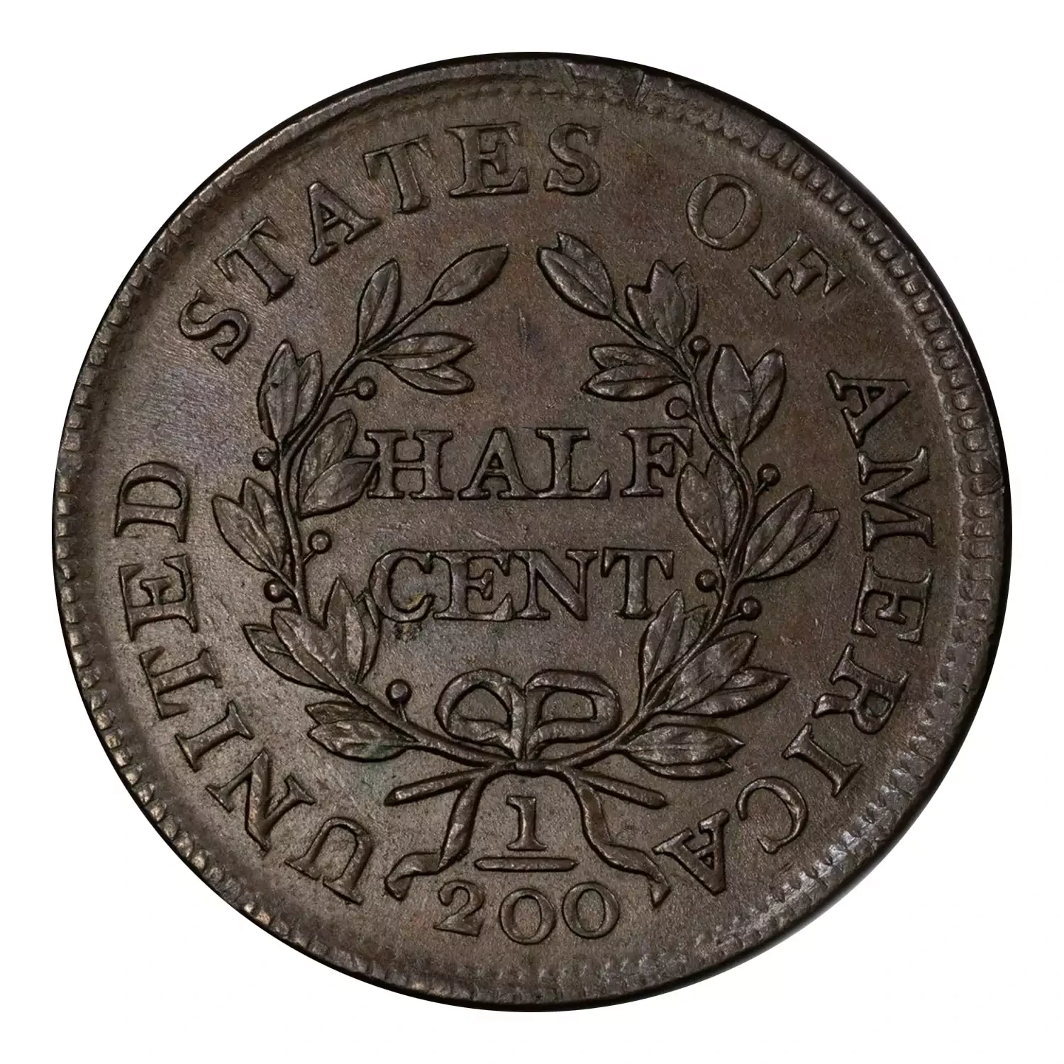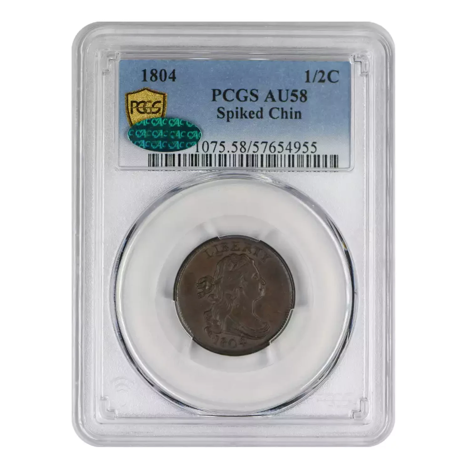 1804 Draped Bust Half Cent PCGS AU-58 BN Spiked Chin CAC