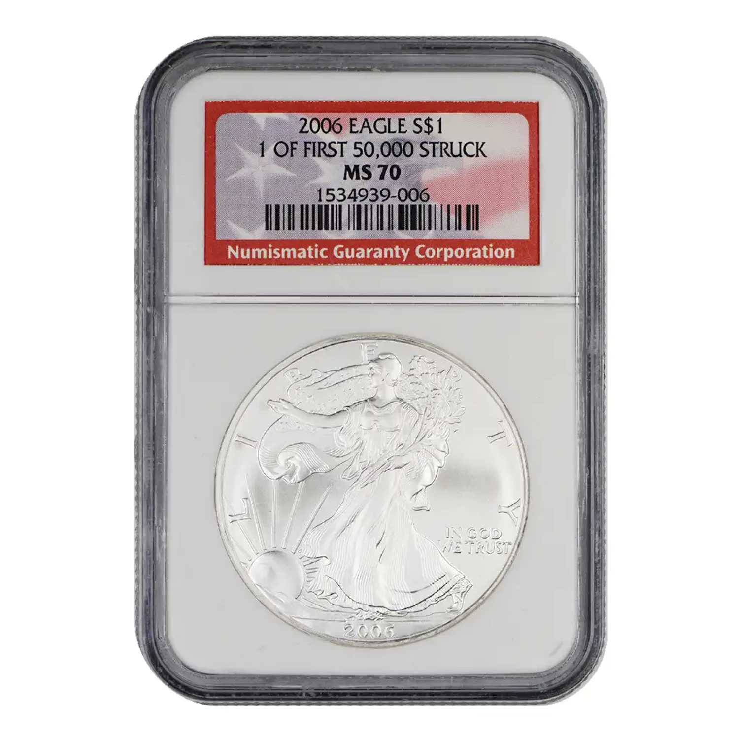 2006 Bullion Silver Eagles NGC MS-70 1 of First 50,000 Struck