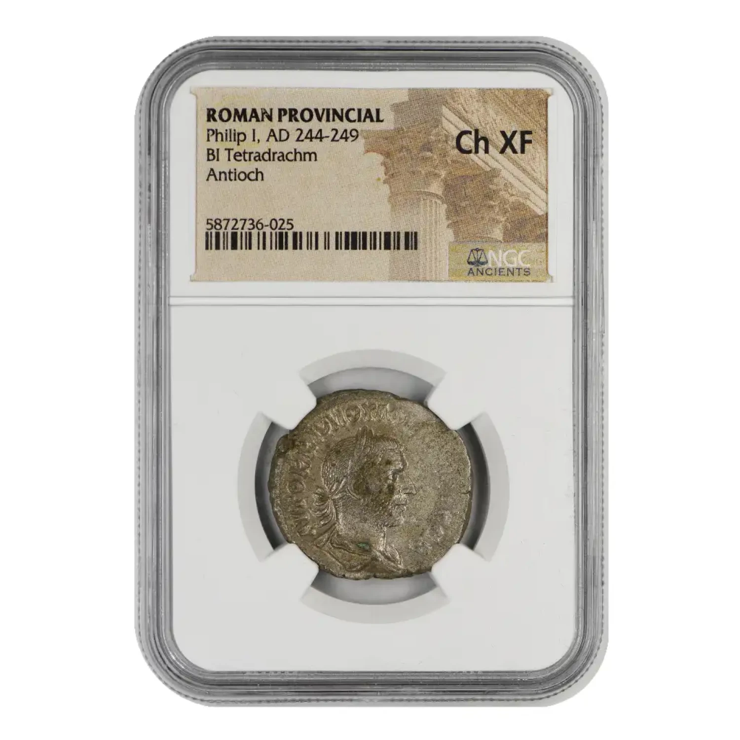 Roman Provincial AD 244-249 BI Tetradrachm Philip I NGC Ch XF