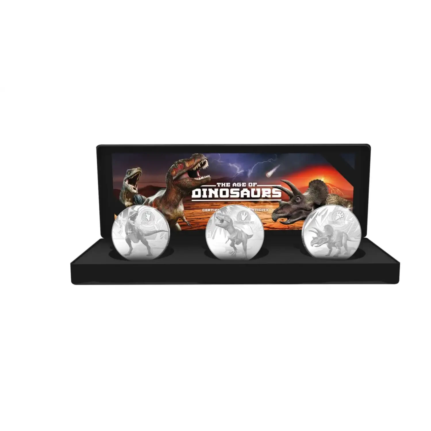 Coin is encapsulated inside a black graphic beauty box along with a certificate of authenticity.