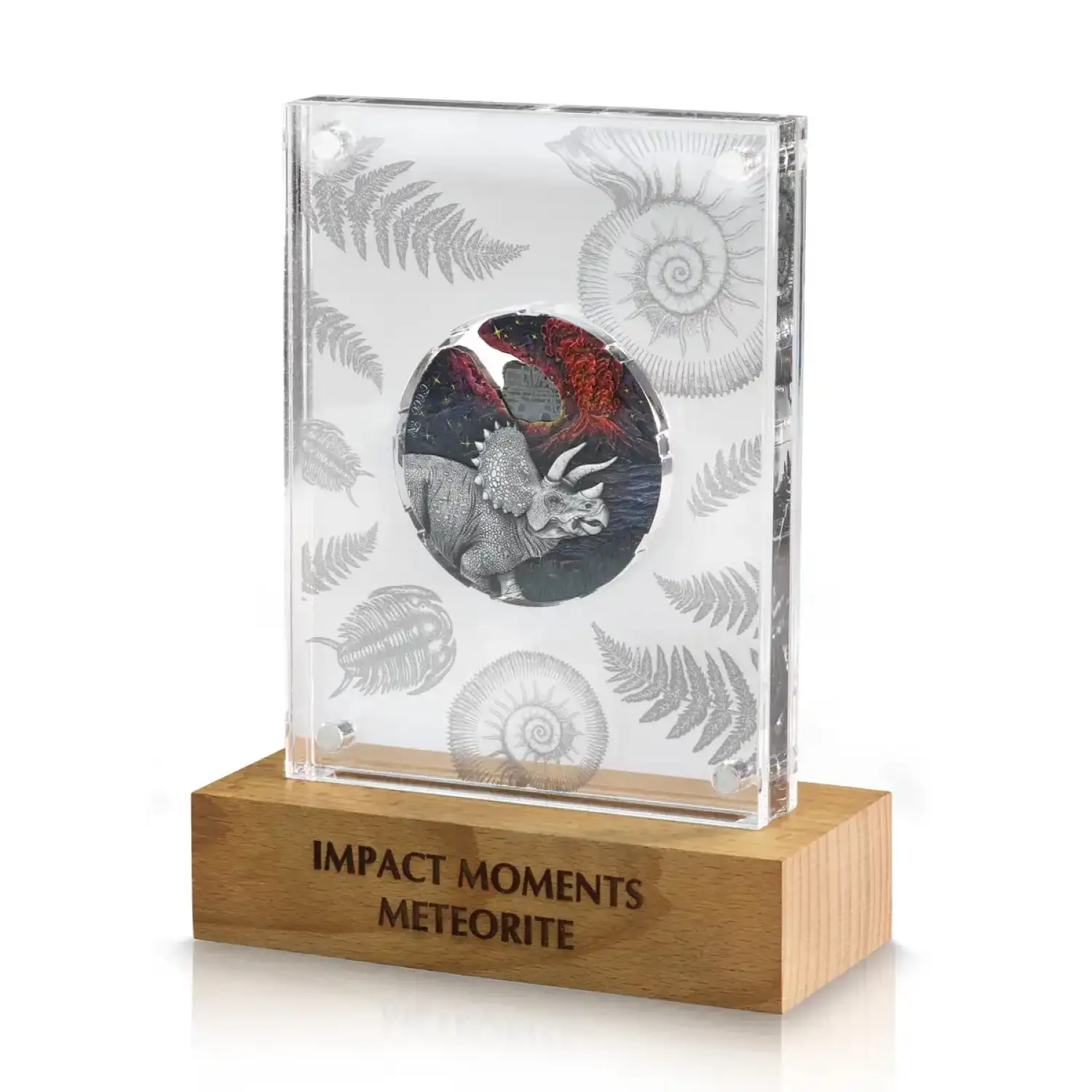 The Niue Island – 2021 Impact Moments: Meteorite 2 oz Silver High Relief will be issued in an edition of 777 numbered coins with a certificate, special ennoblement and dedicated packaging, including an Acrylic Glass Display and Qureco box.
