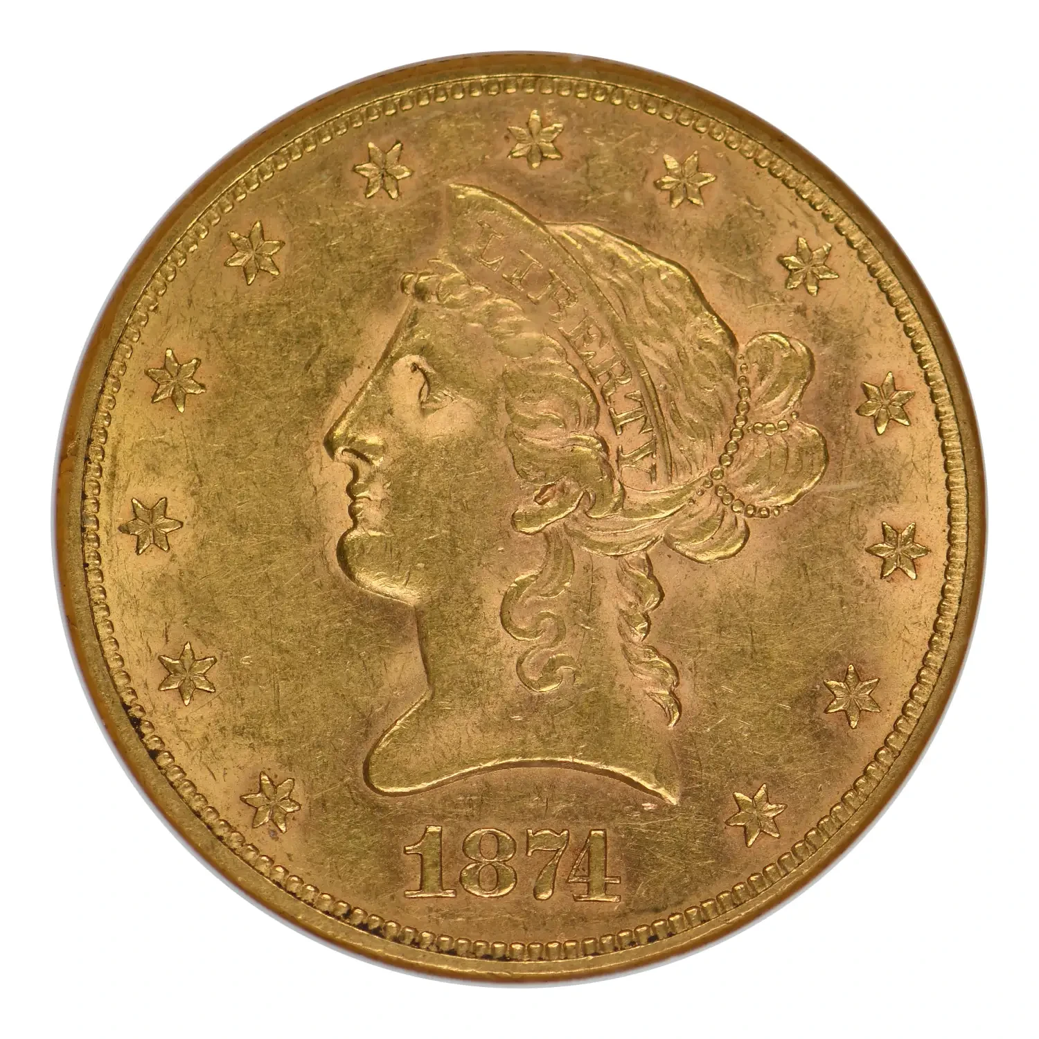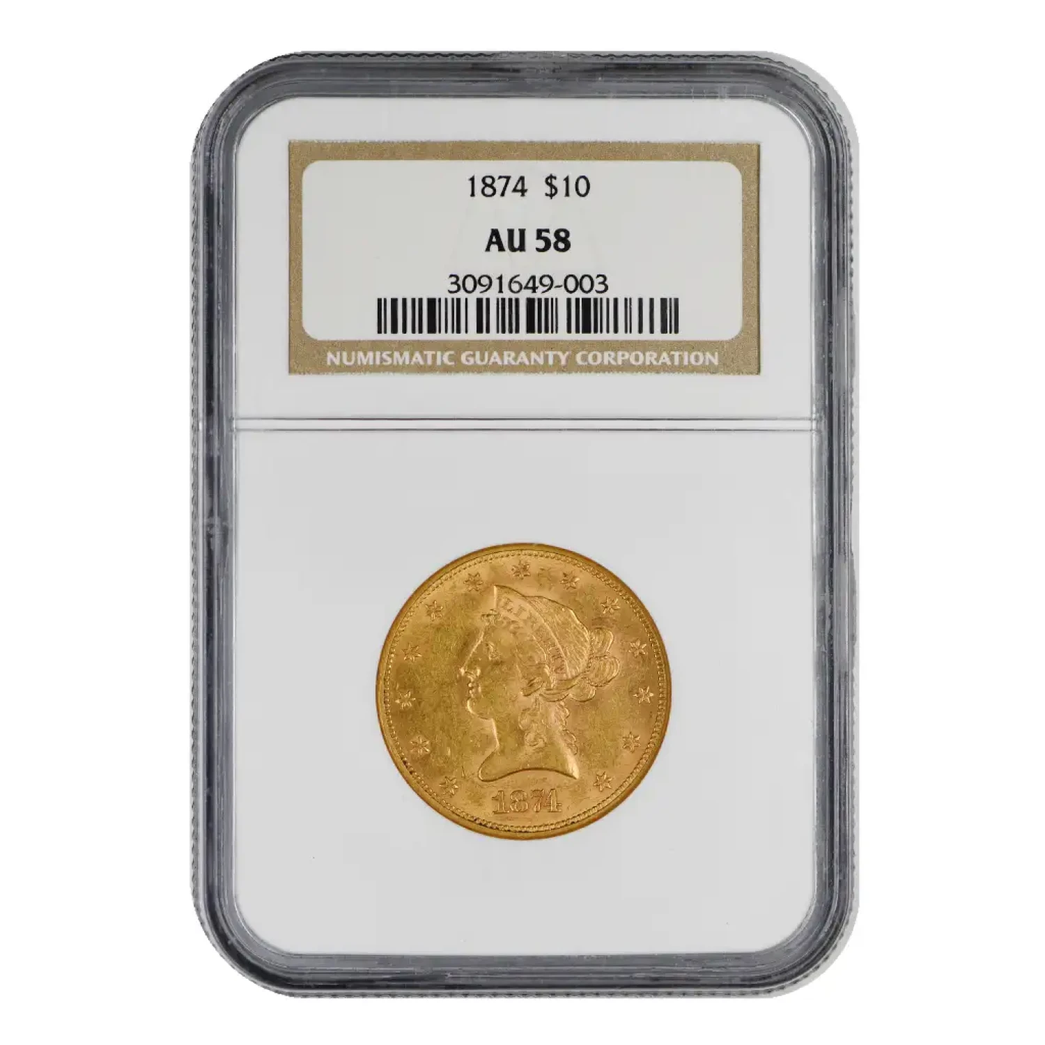 1874 Liberty Head $10 Gold Piece NGC AU-58