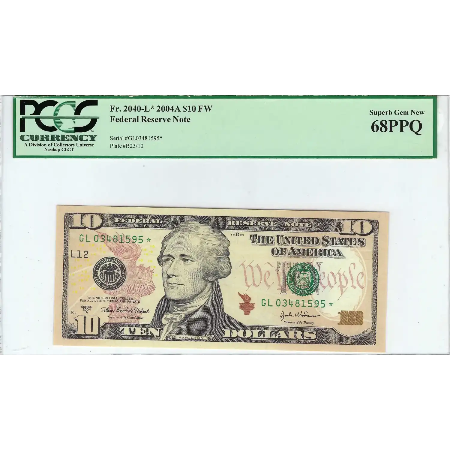 2004-A $10 Small Size Federal Reserve Star Note PCGS 68 PPQ Superb Gem Unc