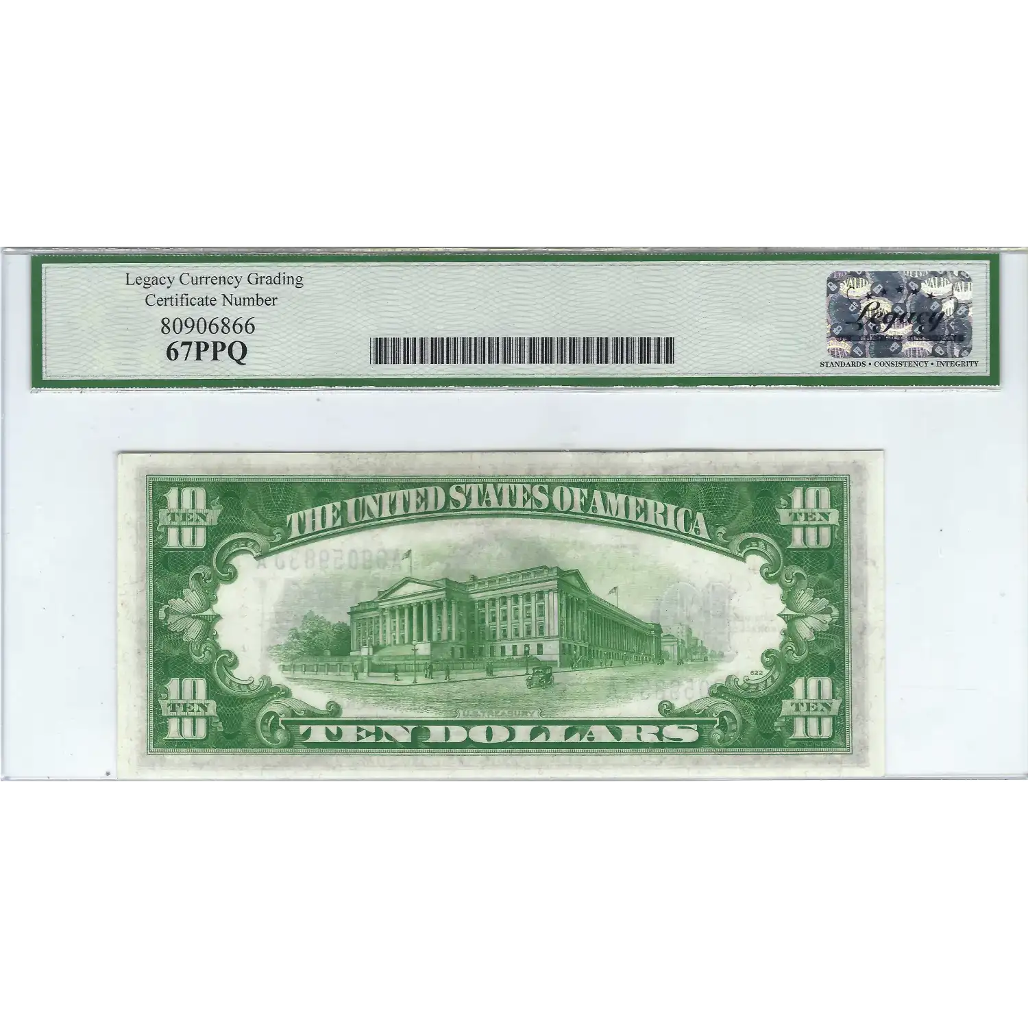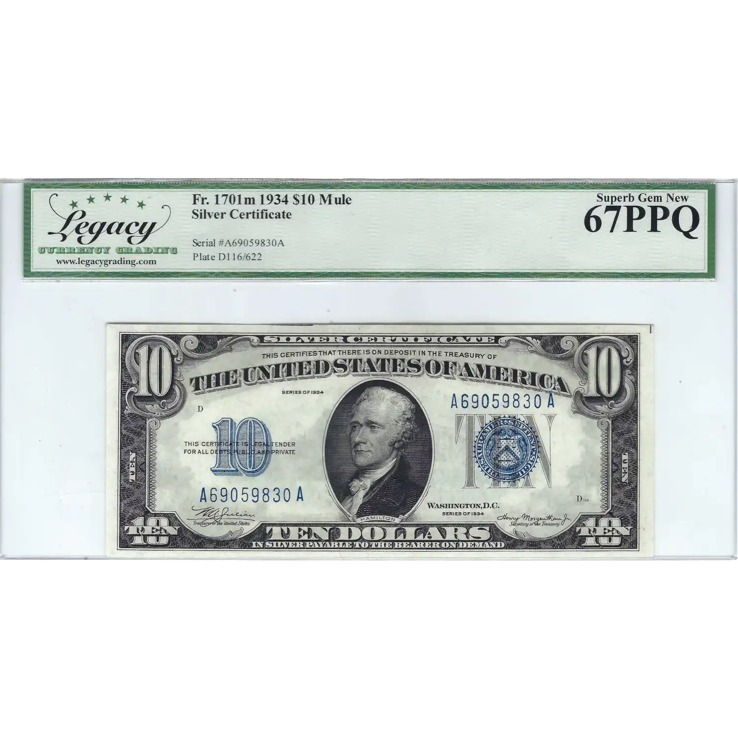 $10 1934 Small Size Silver Certificates Legacy 67 EPQ FR1701m