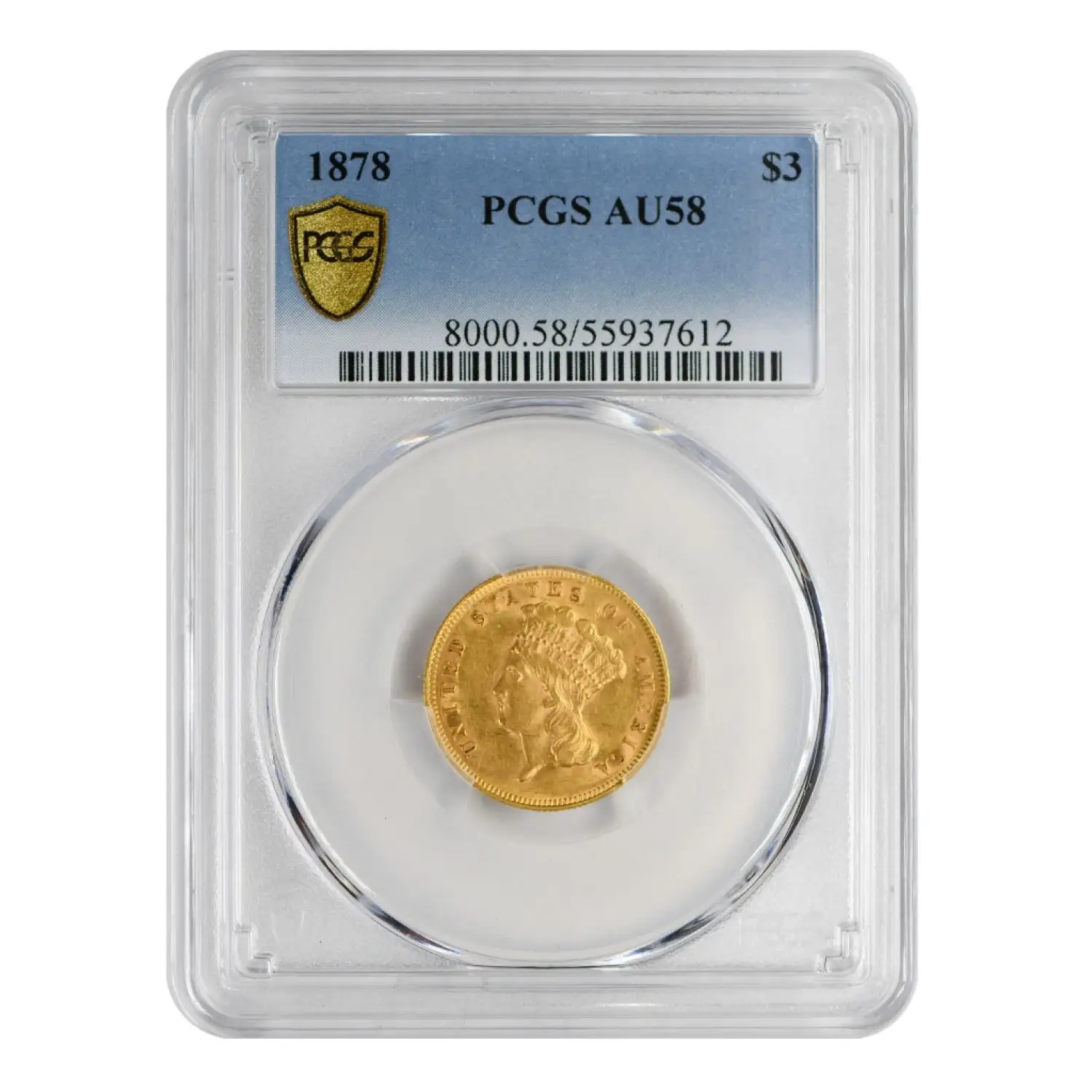 1878 Gold Three Dollars $3 Indian Princess Head PCGS AU-58