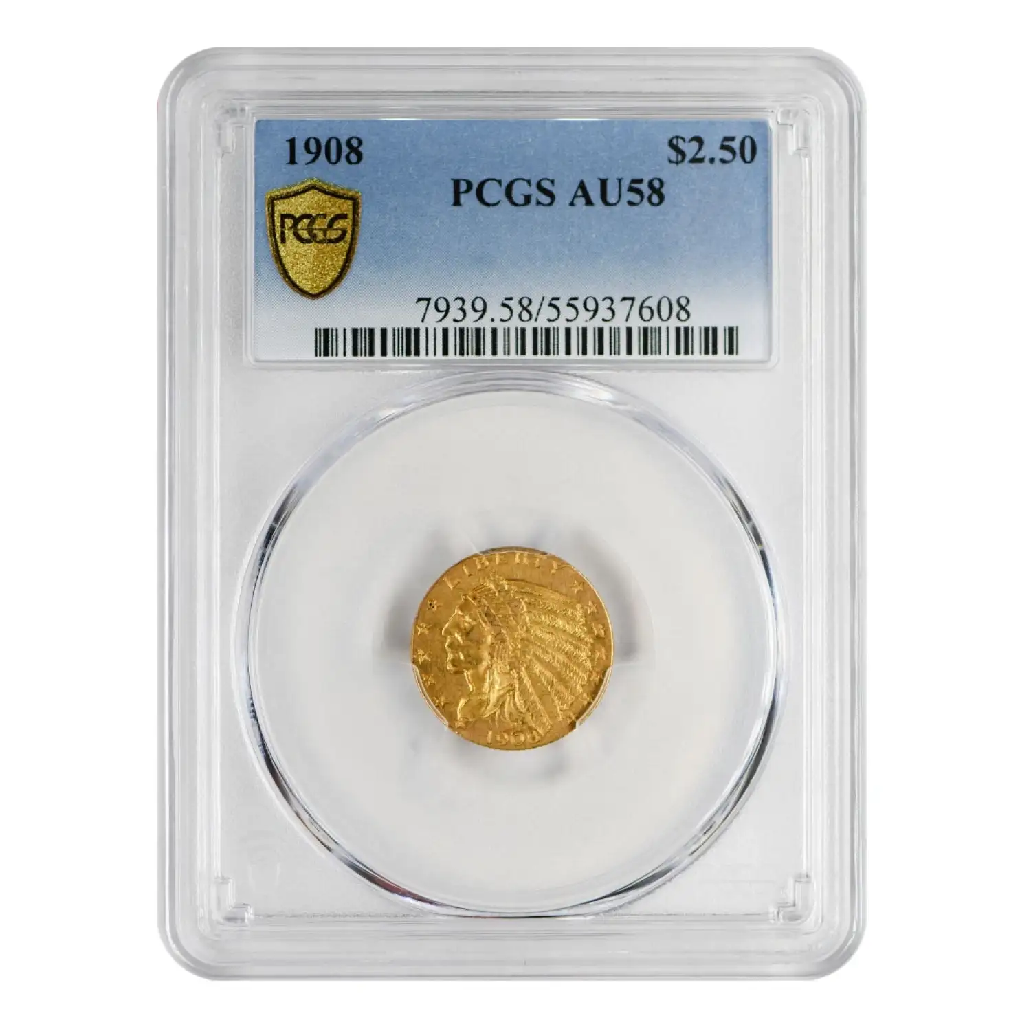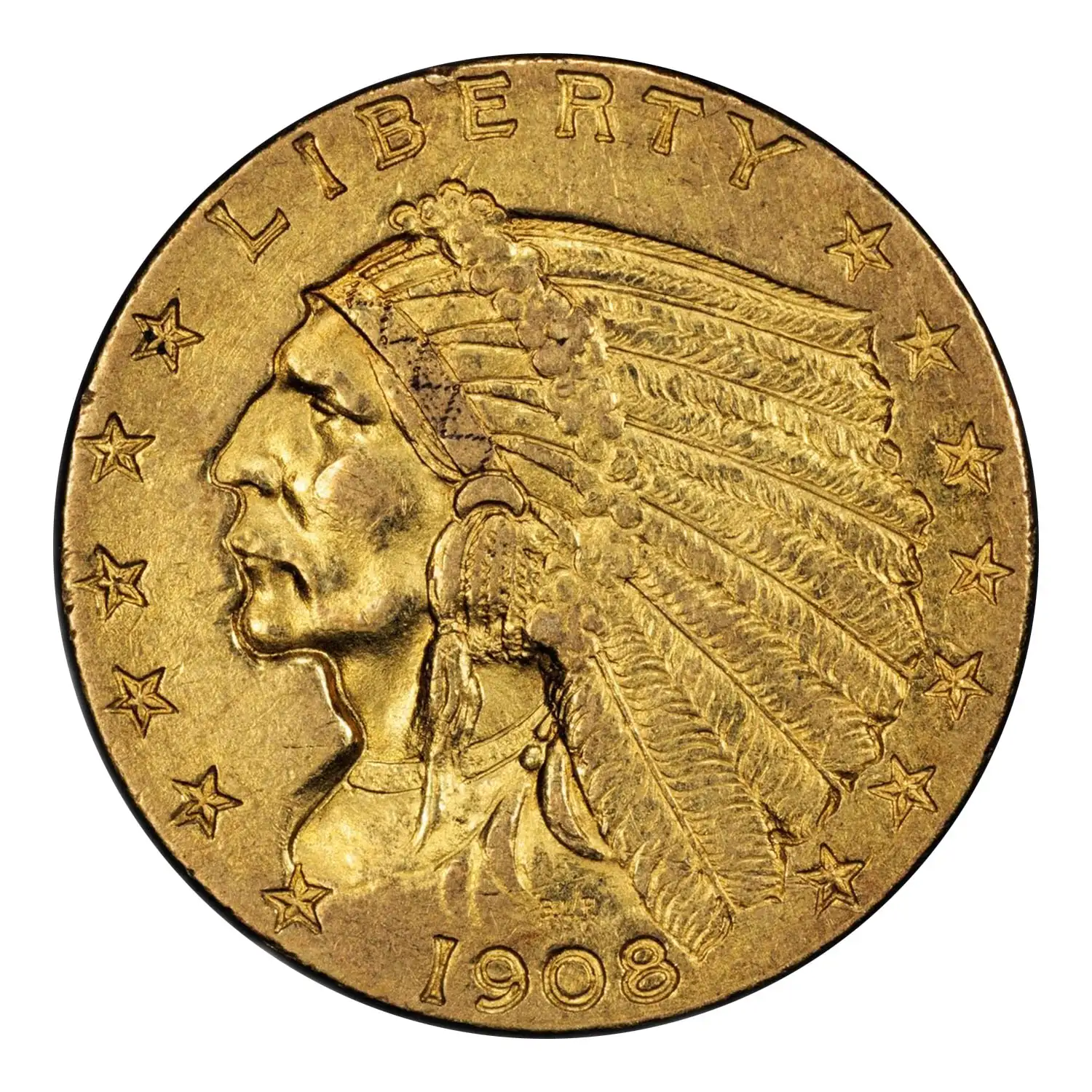 1908 $2 1/2 Gold Indian Quarter Eagle PCGS AU-58