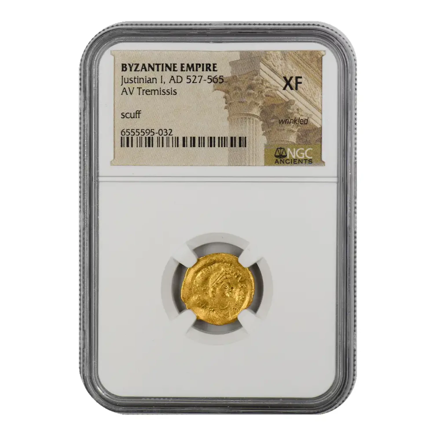 Byzantine AD 527-565 AV Tremissis Justinian I NGC XF