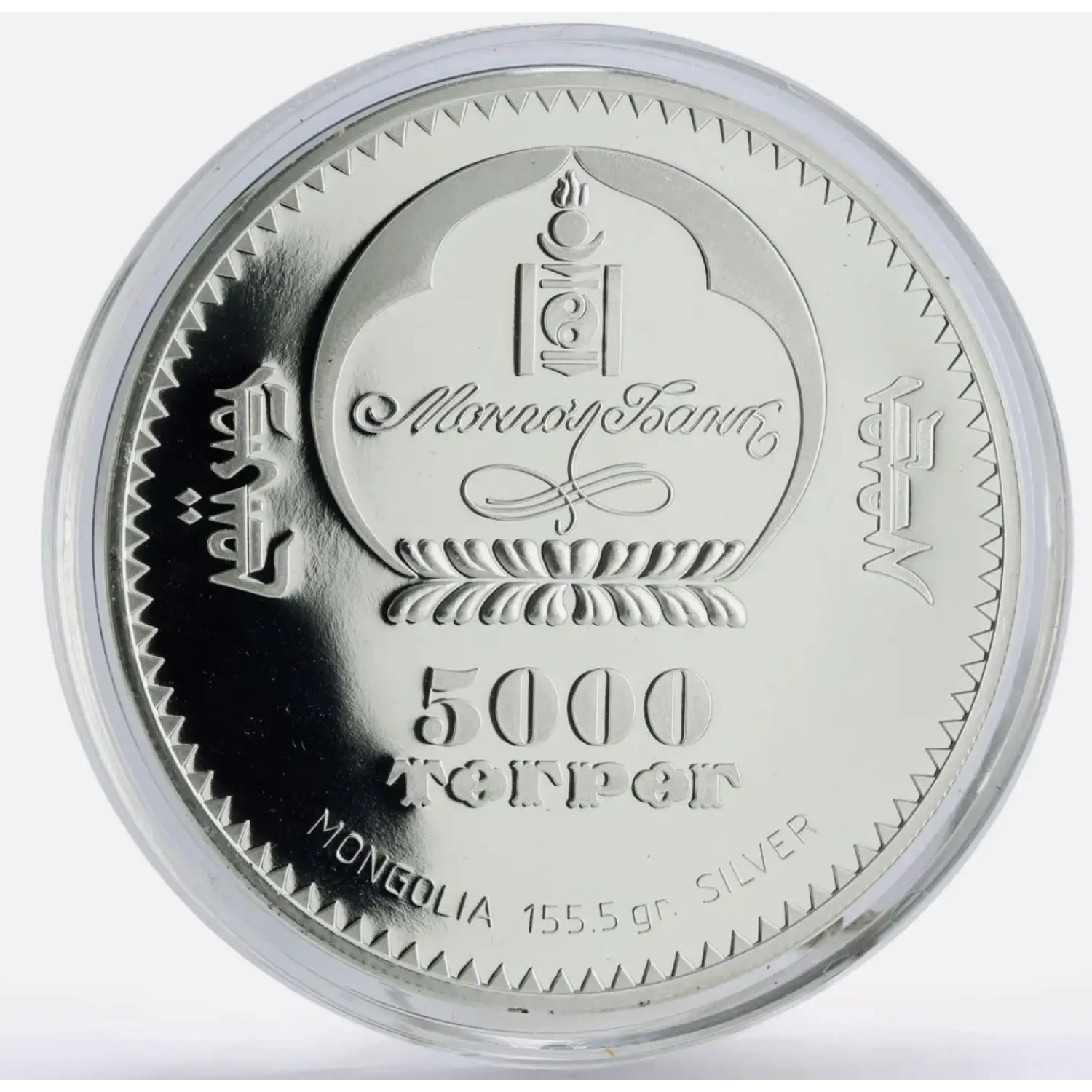 Mongolia 5000 Togrog 2007 “Year of Dragon” 5 oz Silver .999 PROOF
