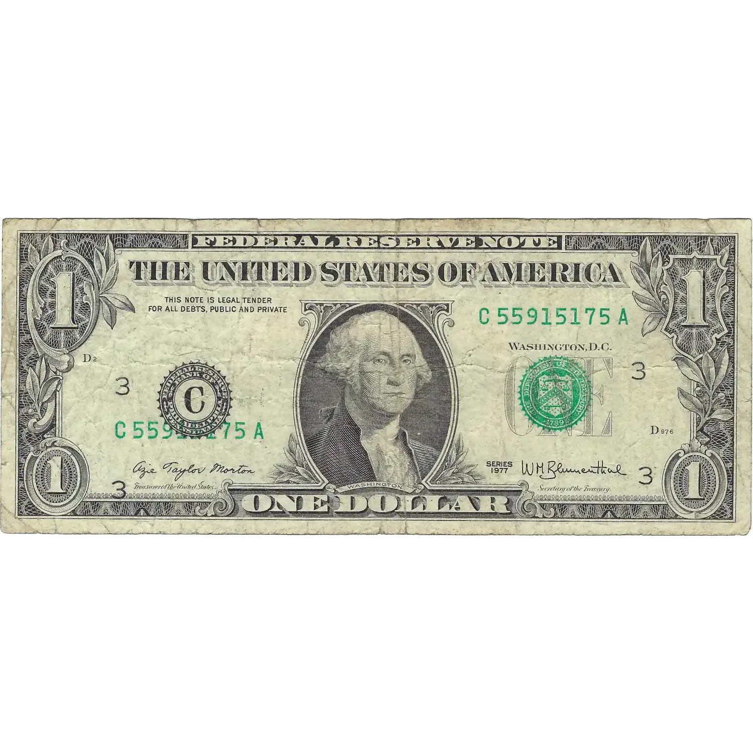 $1 1977 Small Size Federal Reserve Note, Shifted 3rd Printing