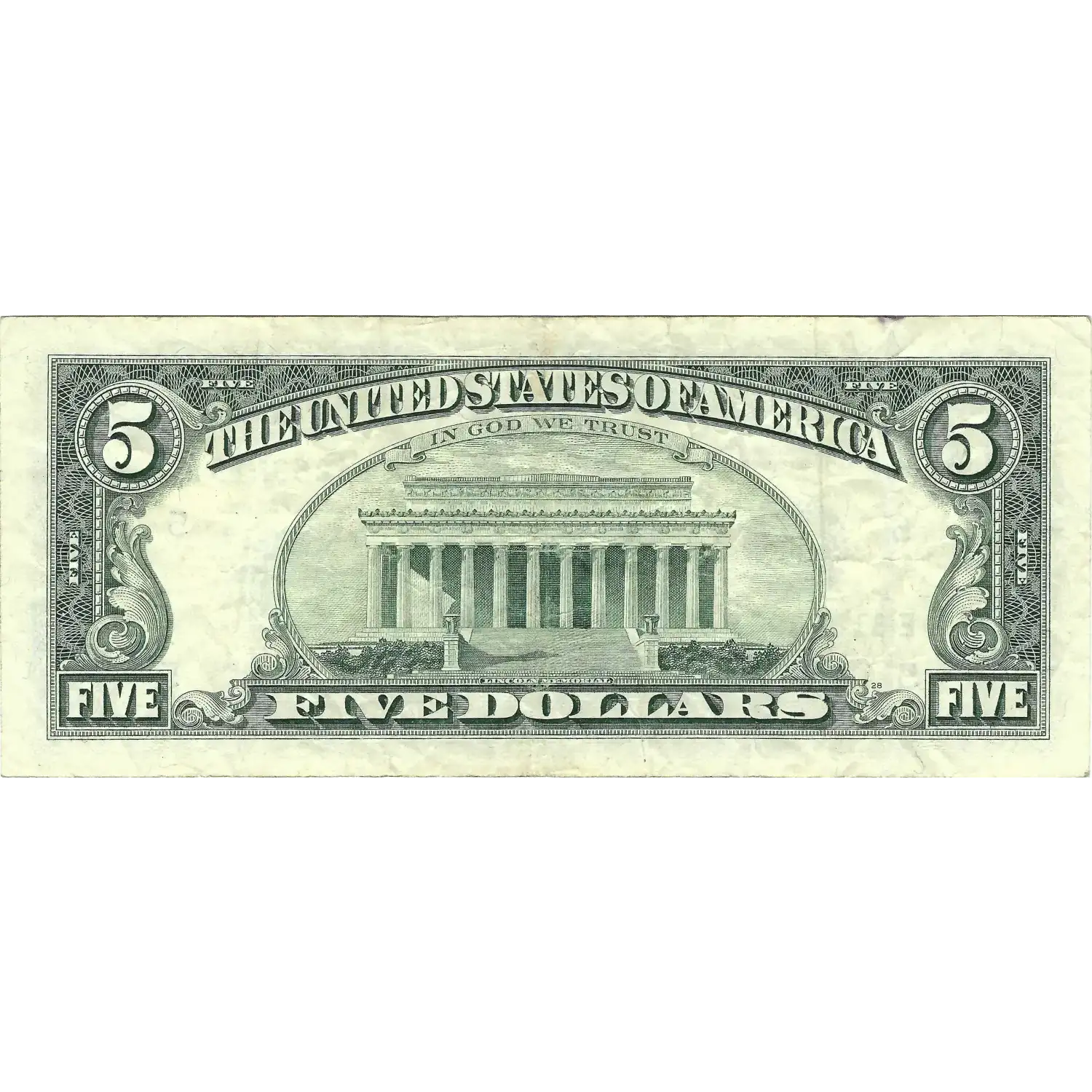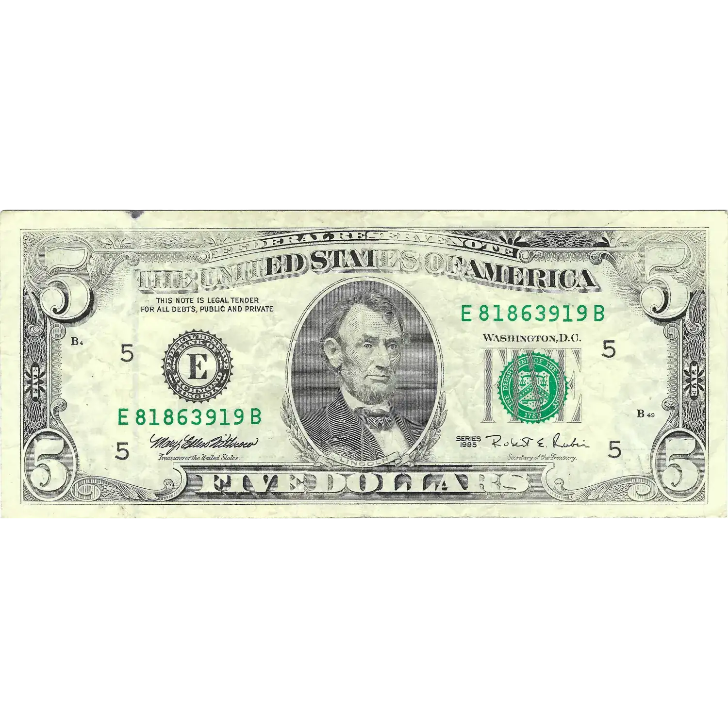 $5 1995 Small Size Federal Reserve Note, Insufficient Inking Error