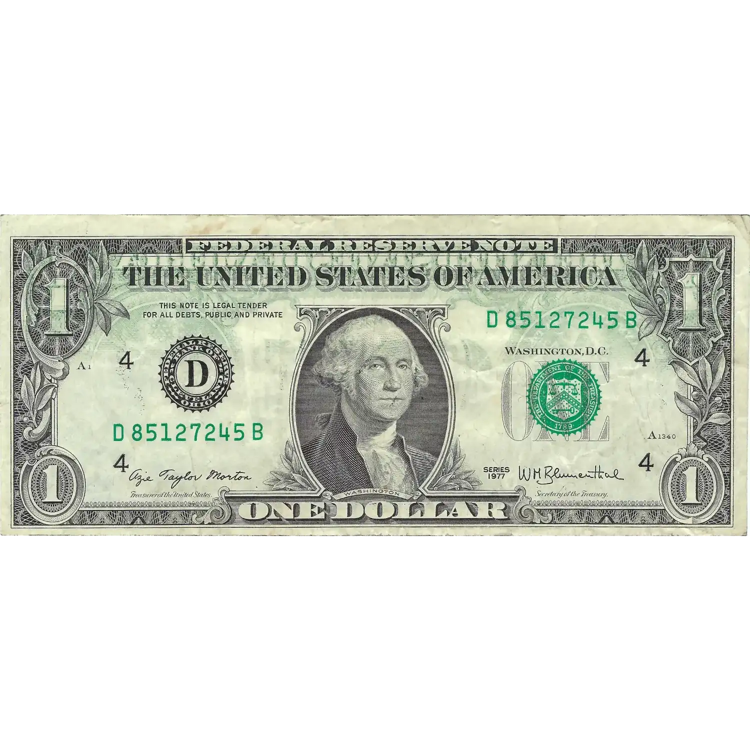 $1 1977 Small Size Federal Reserve Note, Obverse Offset Printing Error