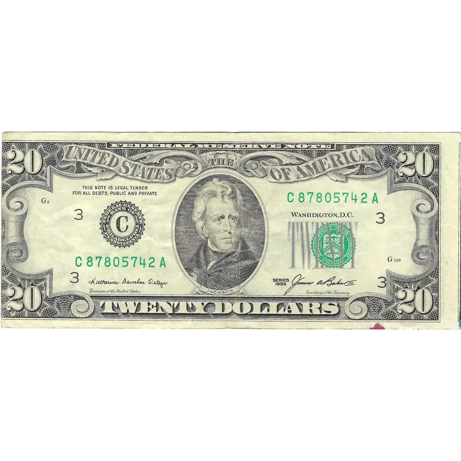 $20 1985 Small Size Federal Reserve Note, Obverse Alignment Error