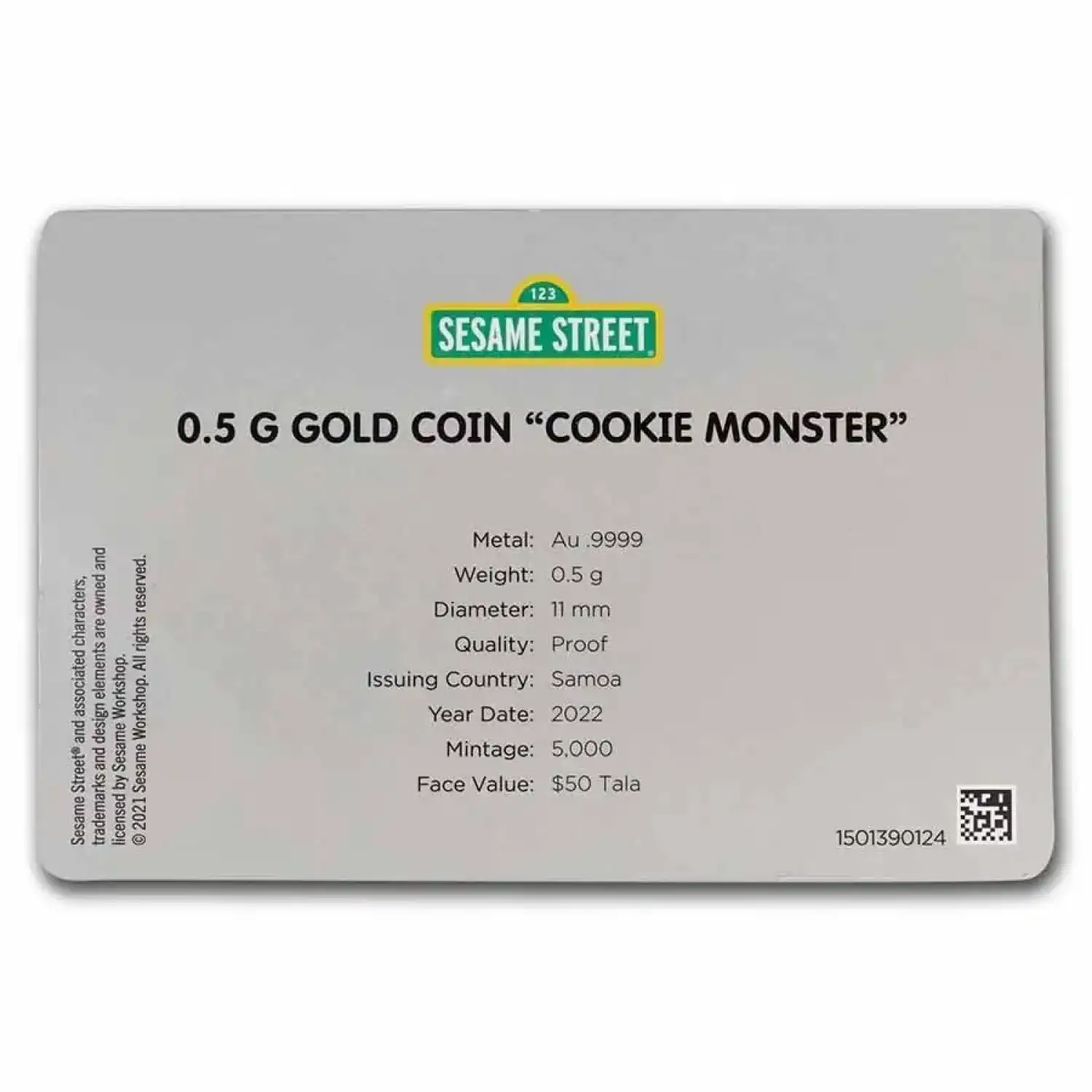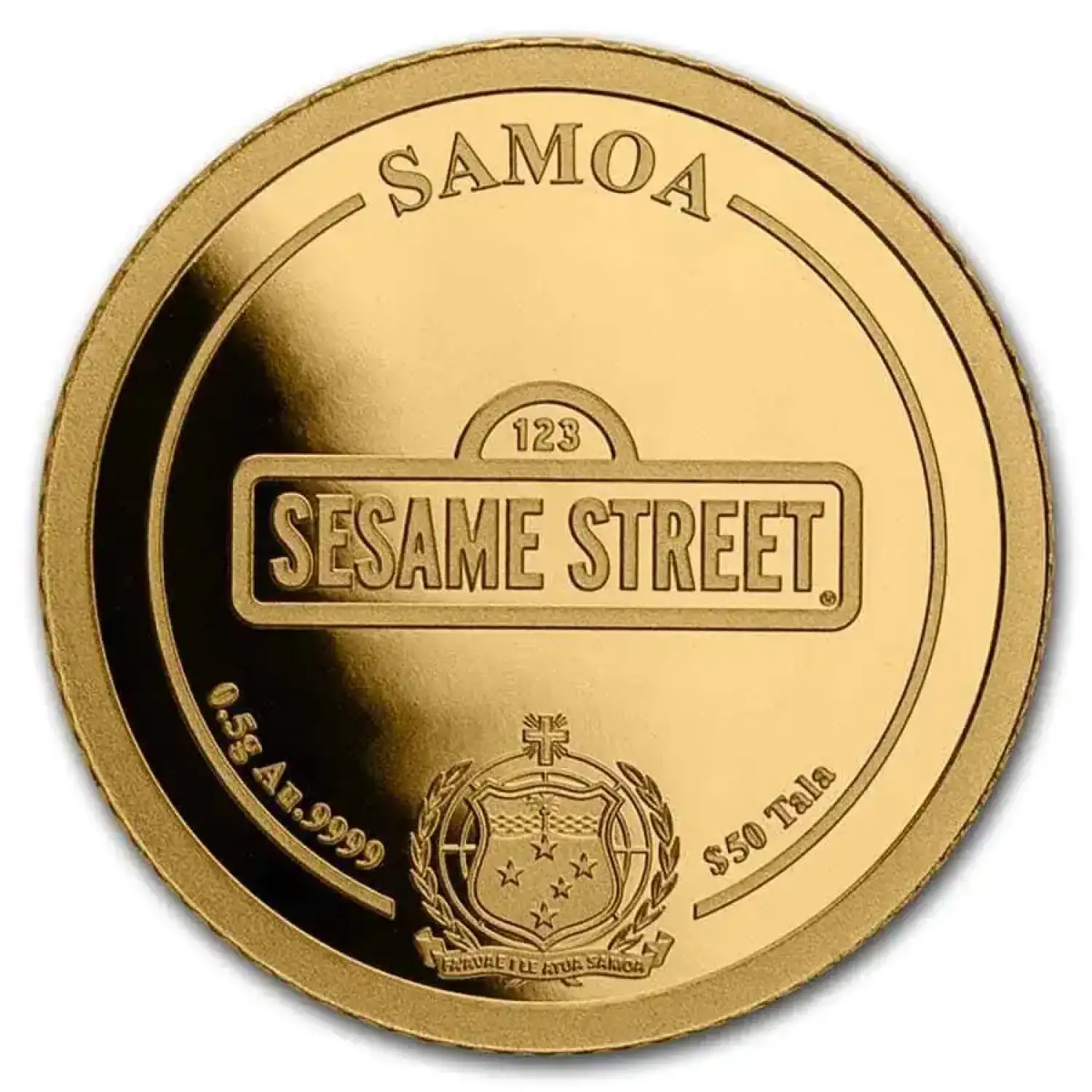 Obverse: Depicts the coat of arms for Samoa. Included is the Sesame Street logo, face value, purity and country of issue.
